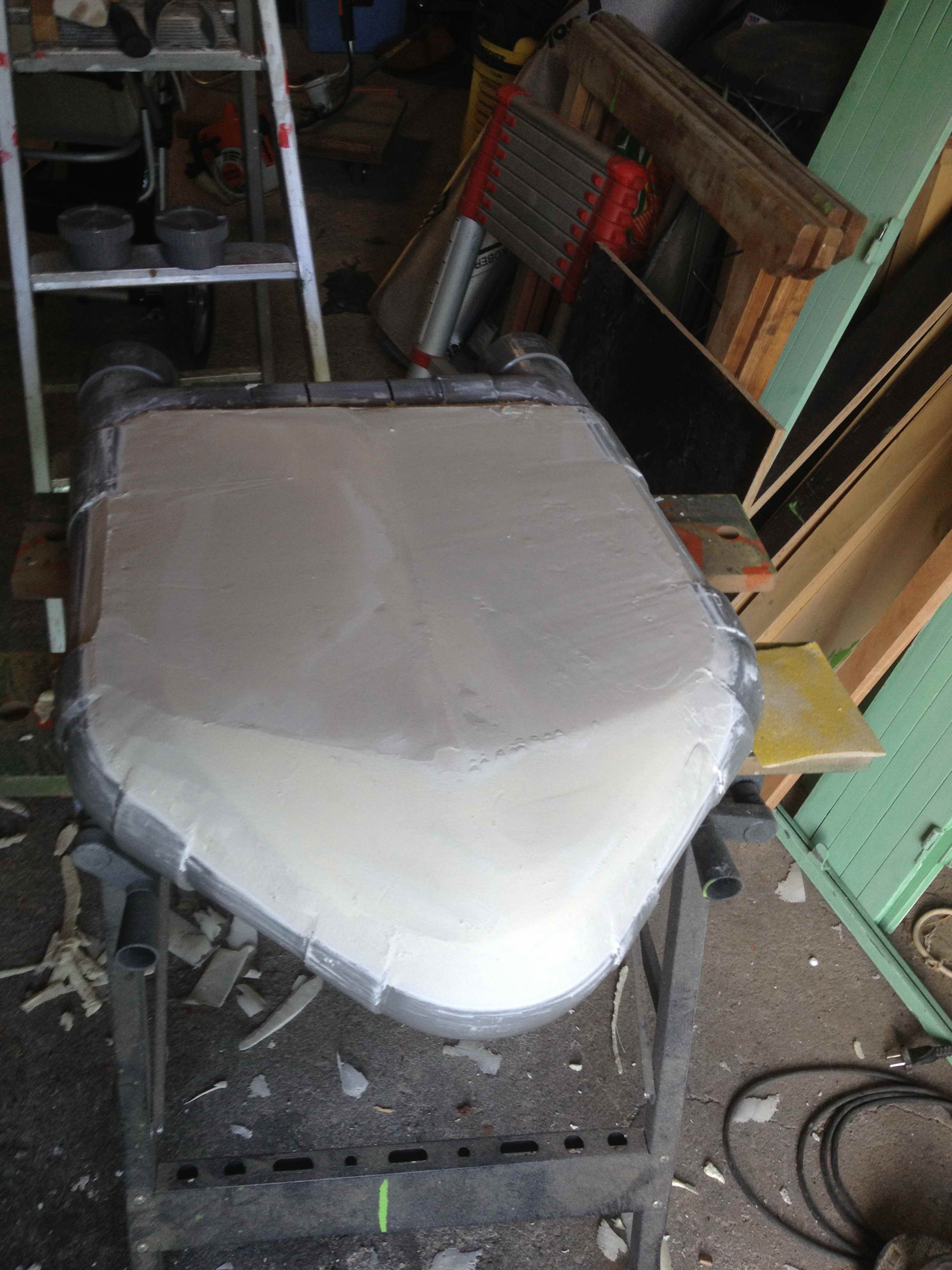 Donc, j'ai compris que vous avez fait un modèle fini à stratifier pour que ça soit solide et étanche, dites-moi si c'est bien ça. Et faites-moi une photo des endroits plâtrés si possible.