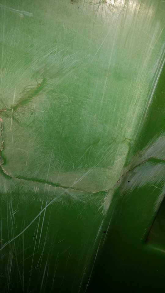 Partout où c'est fissuré, troué, abimé il faut poncer et réparer avec une stratification mat de verre-résine polyester isophtalique. Allez voir sur notre site Résines et Moulages les explications pour opérer des réparations, c'est par ICI.