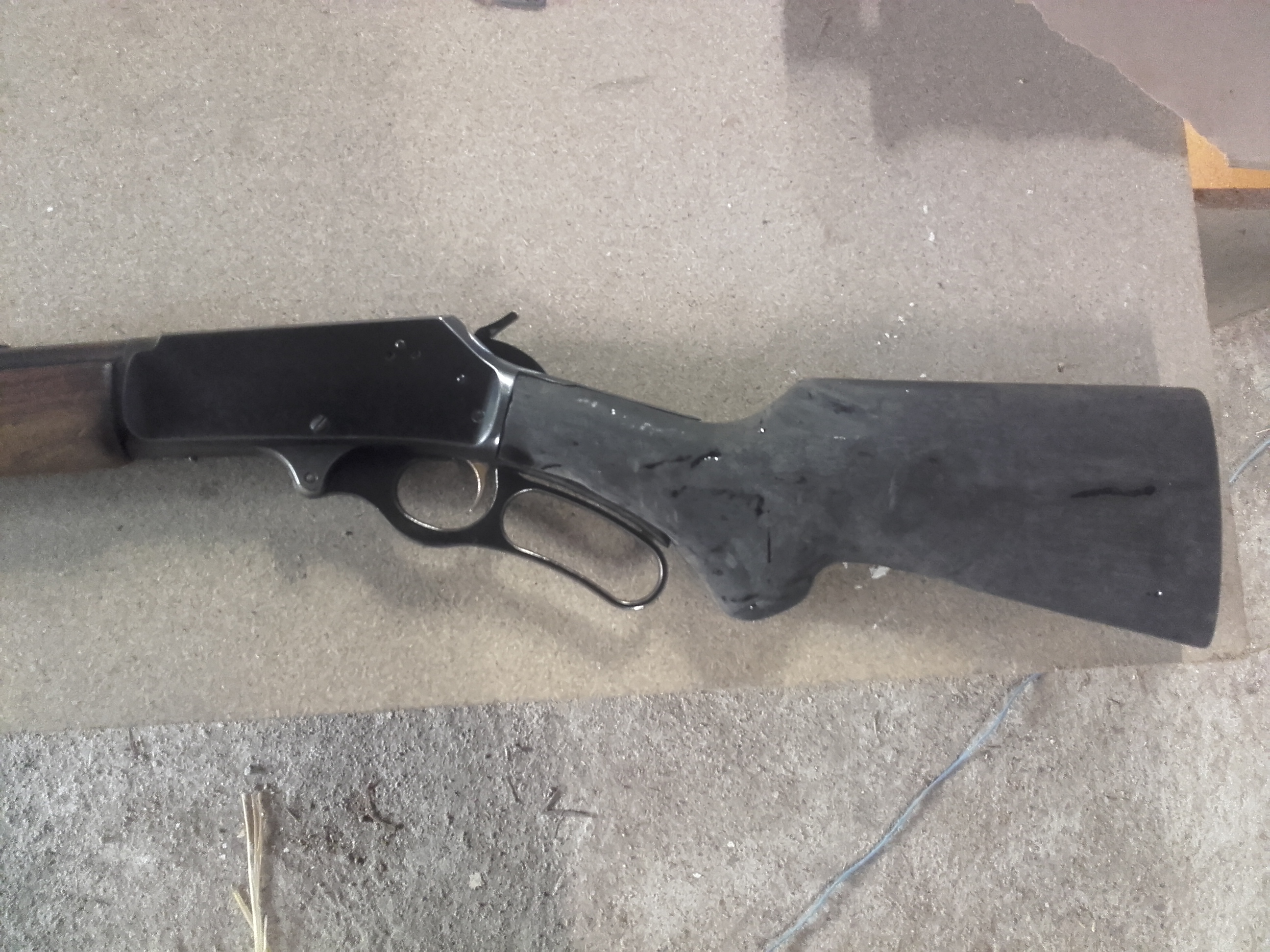 j ai réalisé cet été la crosse en résine polyuréthane( sans trop finoler pour cet premier essai), avec de la G 26. (teinté en noir avec pigment)