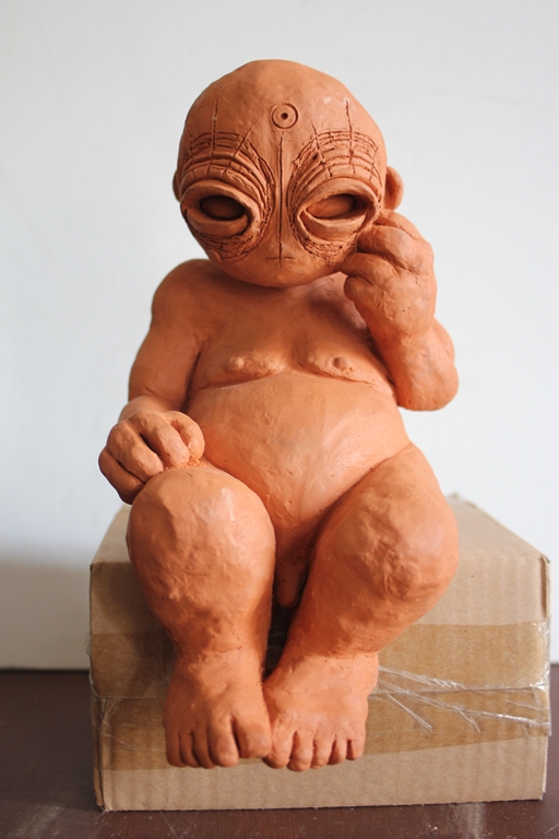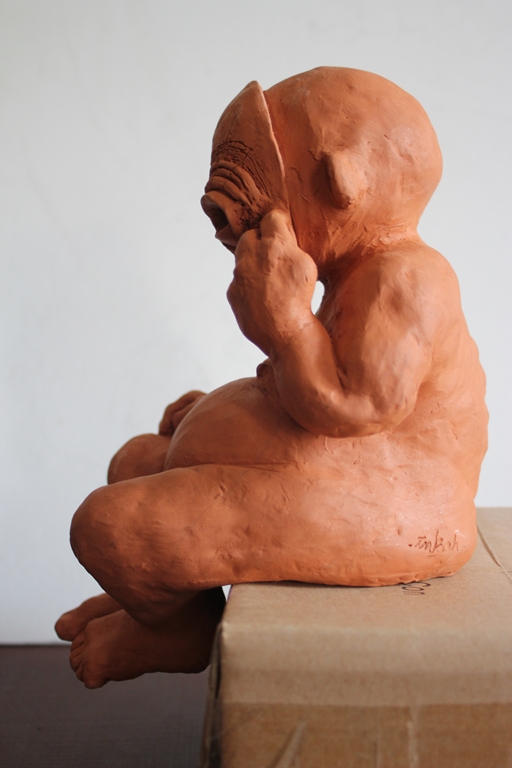 -Premier point ma réalisation (master) et en terre cuite personnage assis d'une trentaine de centimètre.