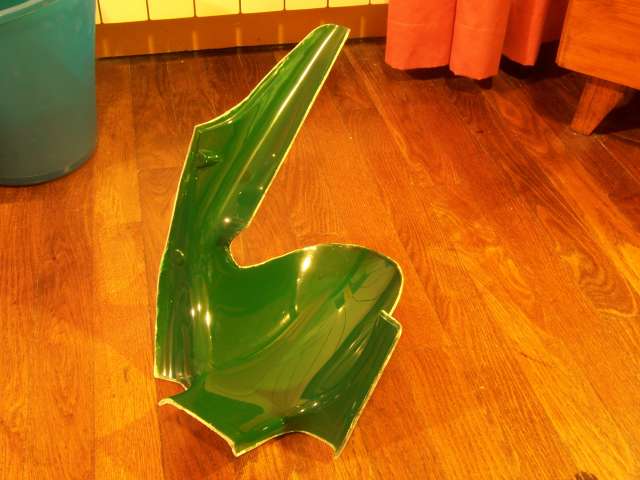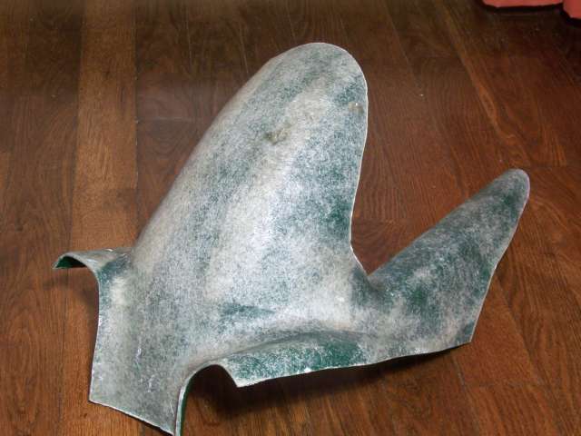 J'ai alors essayé de sortir une pièce de ce moule, également en polyester stratifié, en utilisant plusieurs couche de cire, mais j'ai eu une nouvelle fois un mal fou à démouler et l'aspect était franchement moche...j'ai dû rajouter du gel coat et reponcer plusieurs fois pour retrouver un proto à peu près correct.