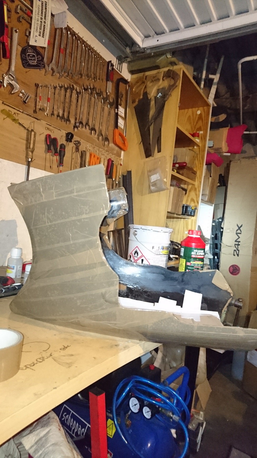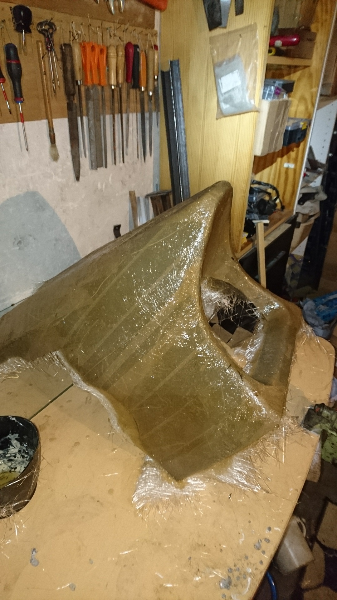 C'est un peu un test ce sabot! Je sais bien que mon stratifié sera tout pourri niveau résistance à cause des conditions de polymérisation, mais bon pour un sabot...