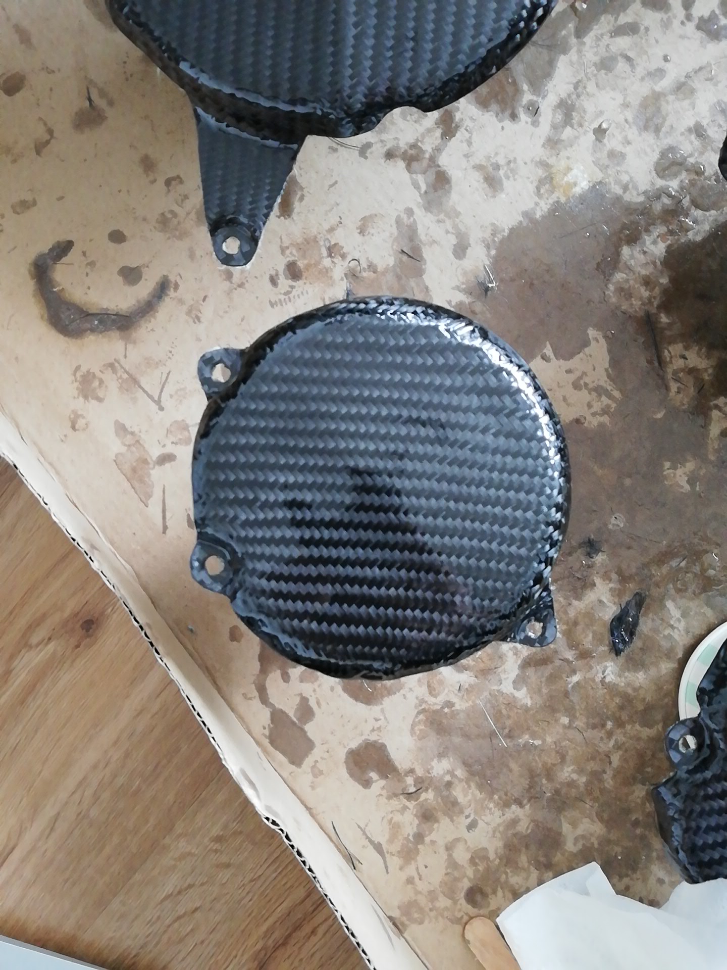Sous peu je vais changé un peu de registre, je vais enfin pouvoir travailler sur ma moto afin de réaliser des protection de platine repose pied 8-) Le tout sous vide, ces tirages vont me servir d'échantillonnage avant de passer sur les protections de carters.