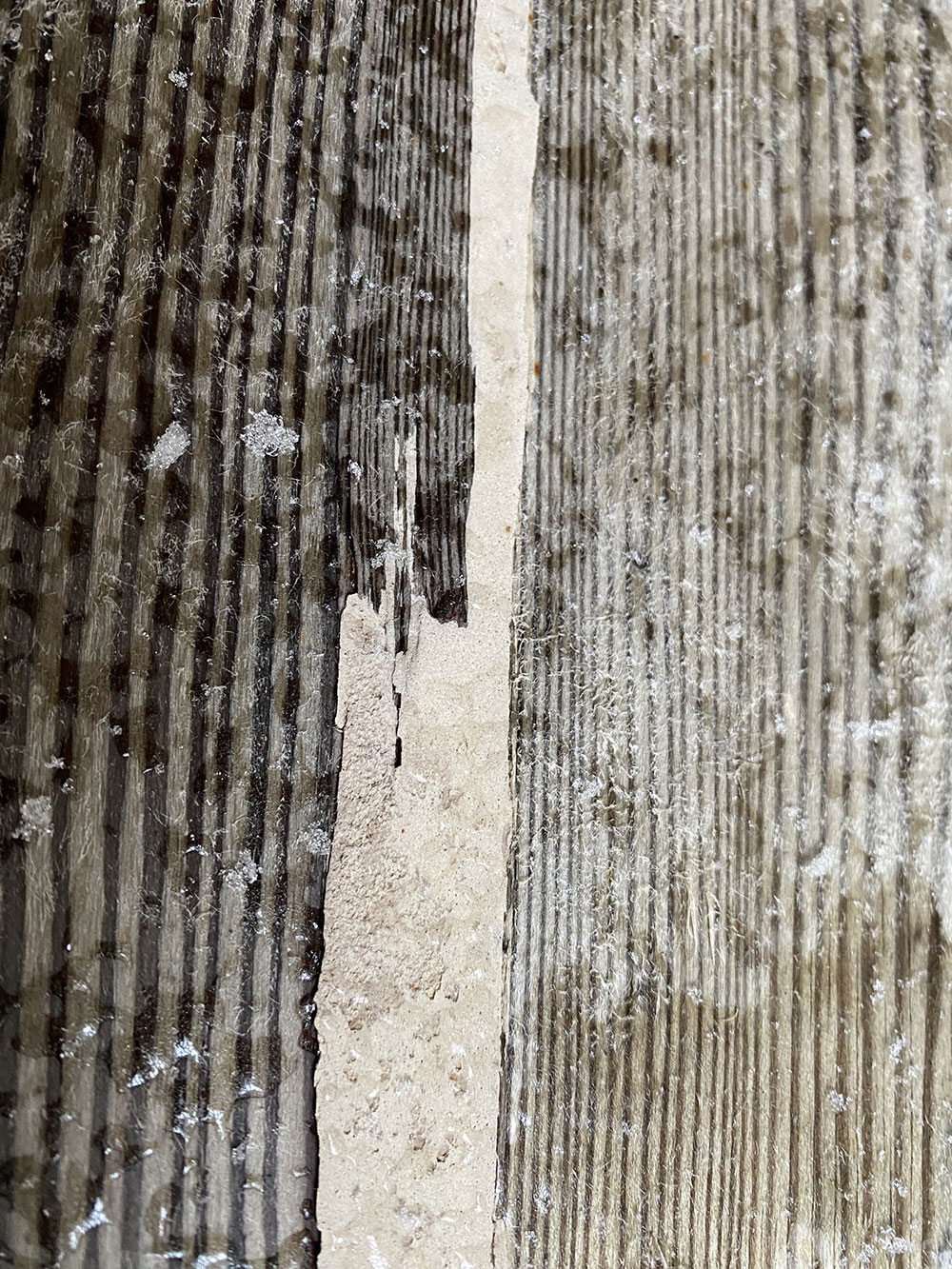 Sur photo je peux me tromper mais à priori c'est du joint souple type élastomère de PU mais qui n'est plus souple du fait du vieillissement.