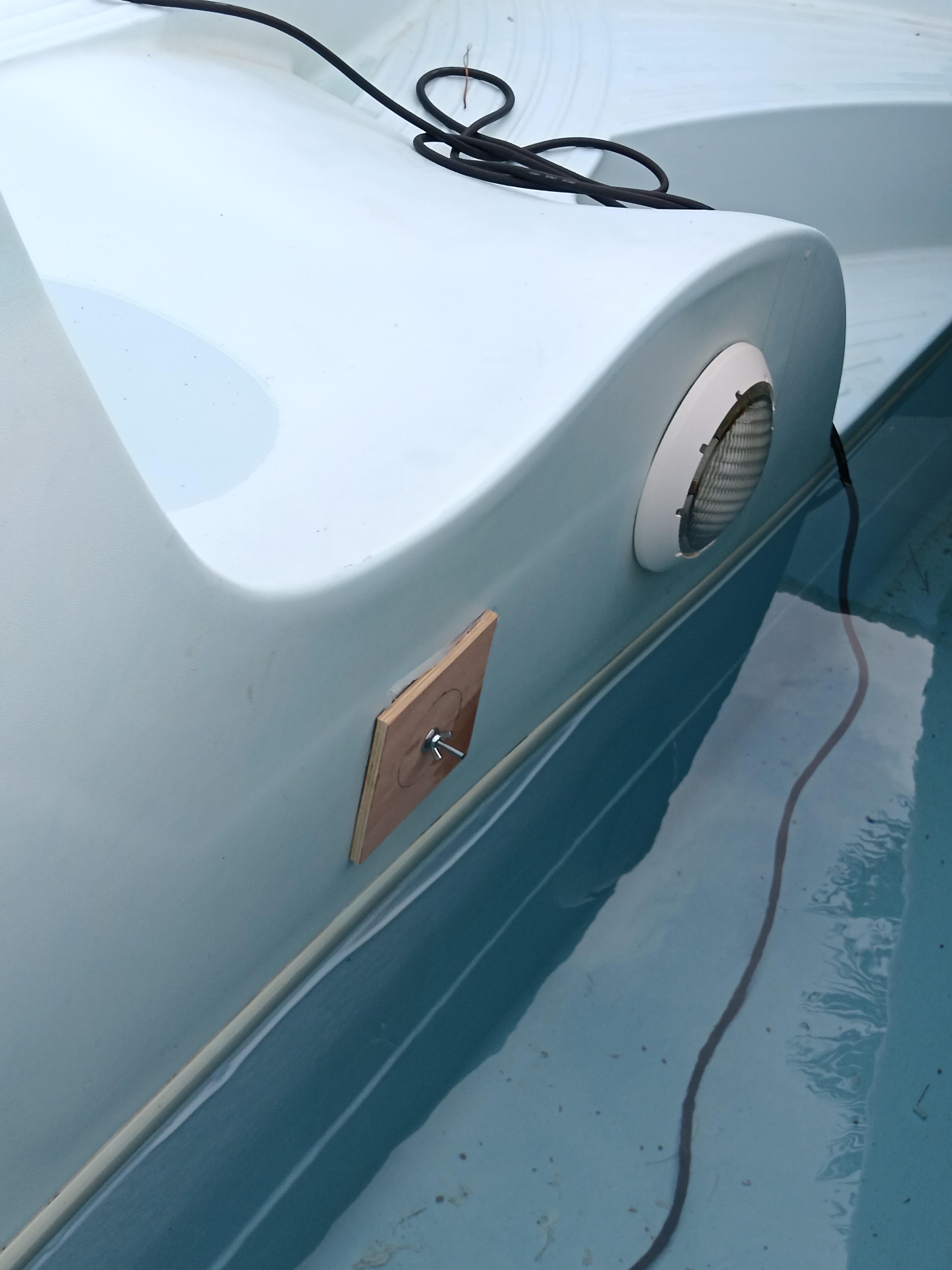Effectivement j'ai mis une Plaque en contreplaqué côté bassin avec un montage sous l'escalier qui me permet de maintenir la plaque pendant la stratification. Le plie c'est le liner.