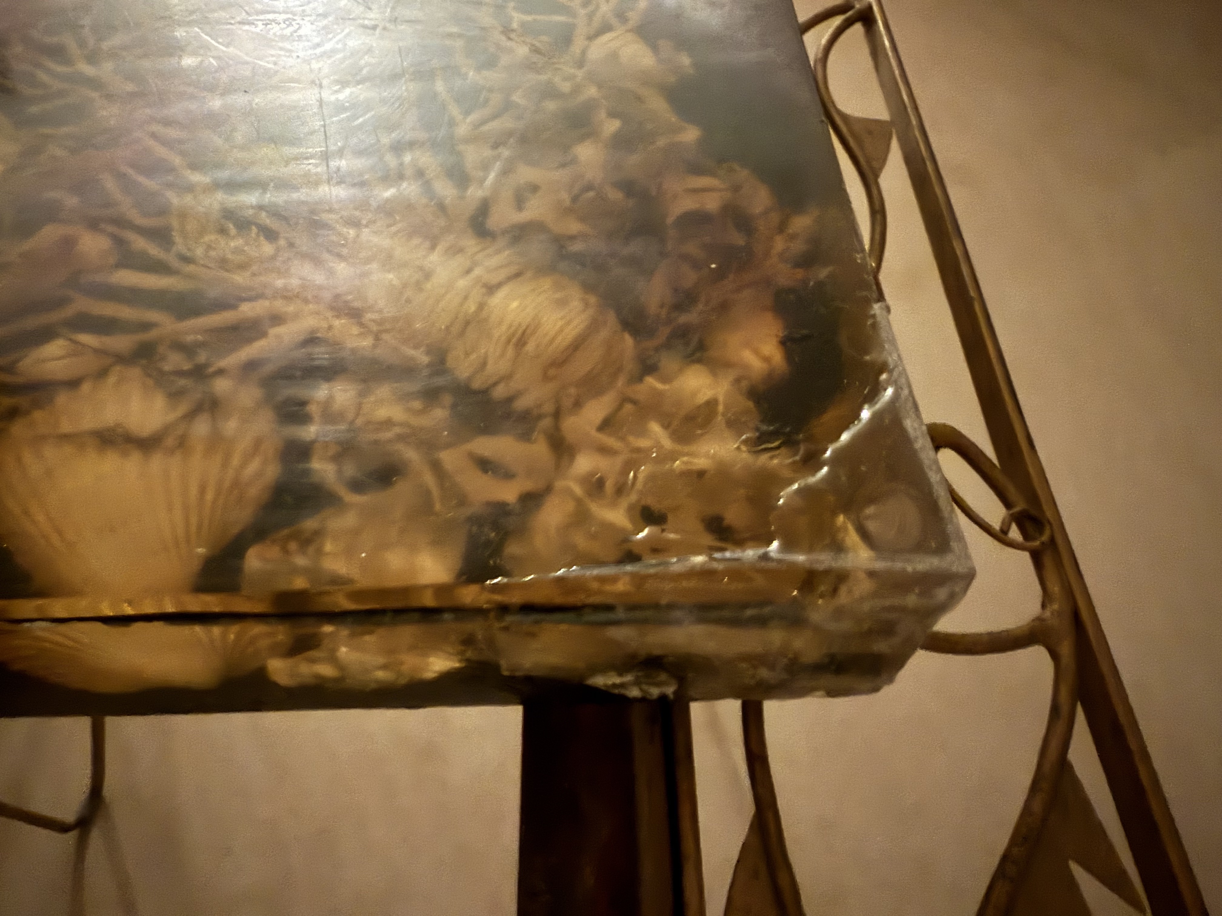 Je souhaite rénover cette résine avec inclusion vintage (format 30 x 45 x 5 cm). Je recherche des conseils, s'il vous plait.