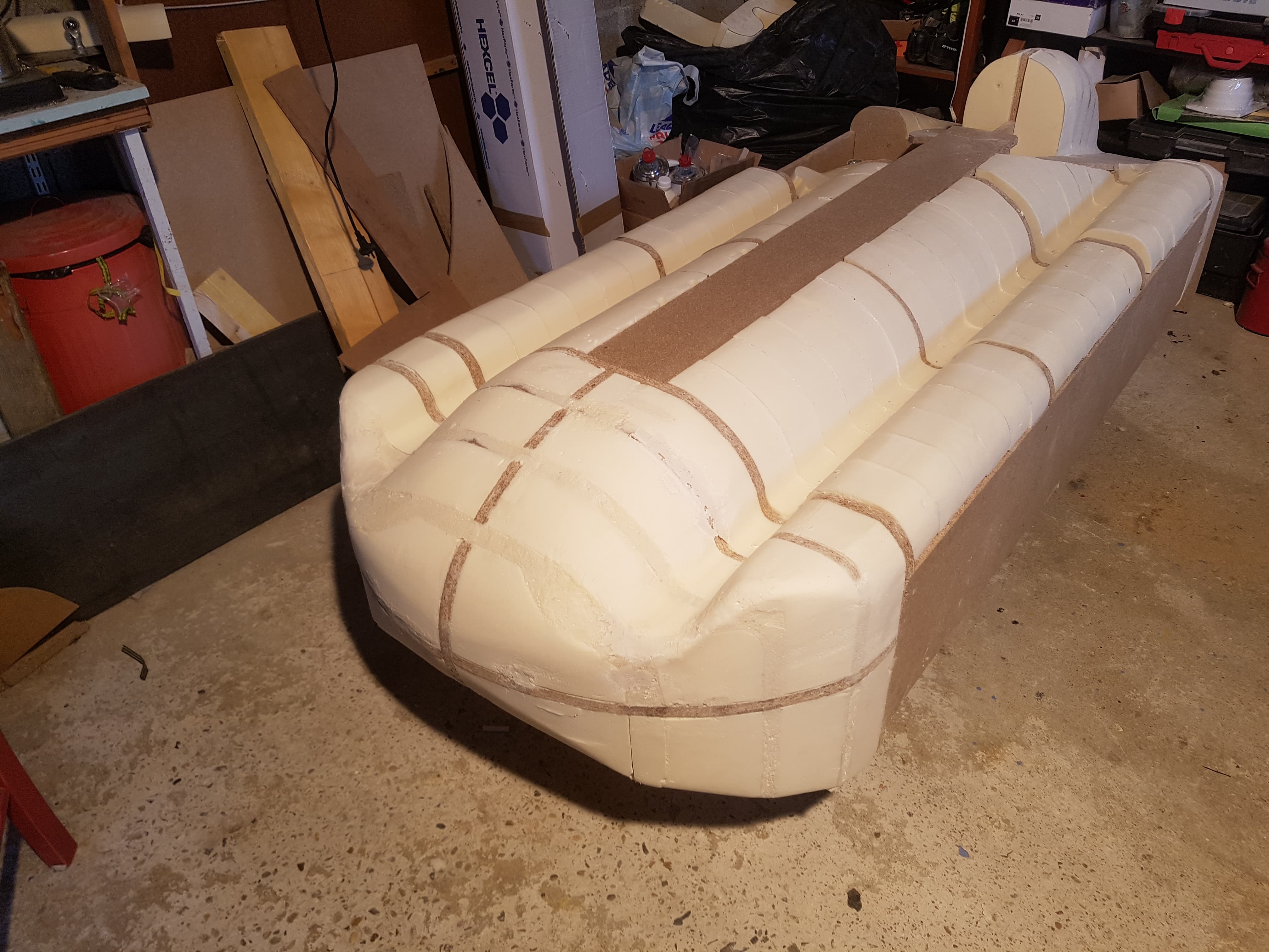 C'est la carrosserie pour une caisse à savon. Je vais commencer par 3 couches et si jamais je trouve ça trop léger je referai des couches à l'intérieurs. L'intérieur de la carrosserie sera relativement lisse puisque qu'il aura la forme du master.