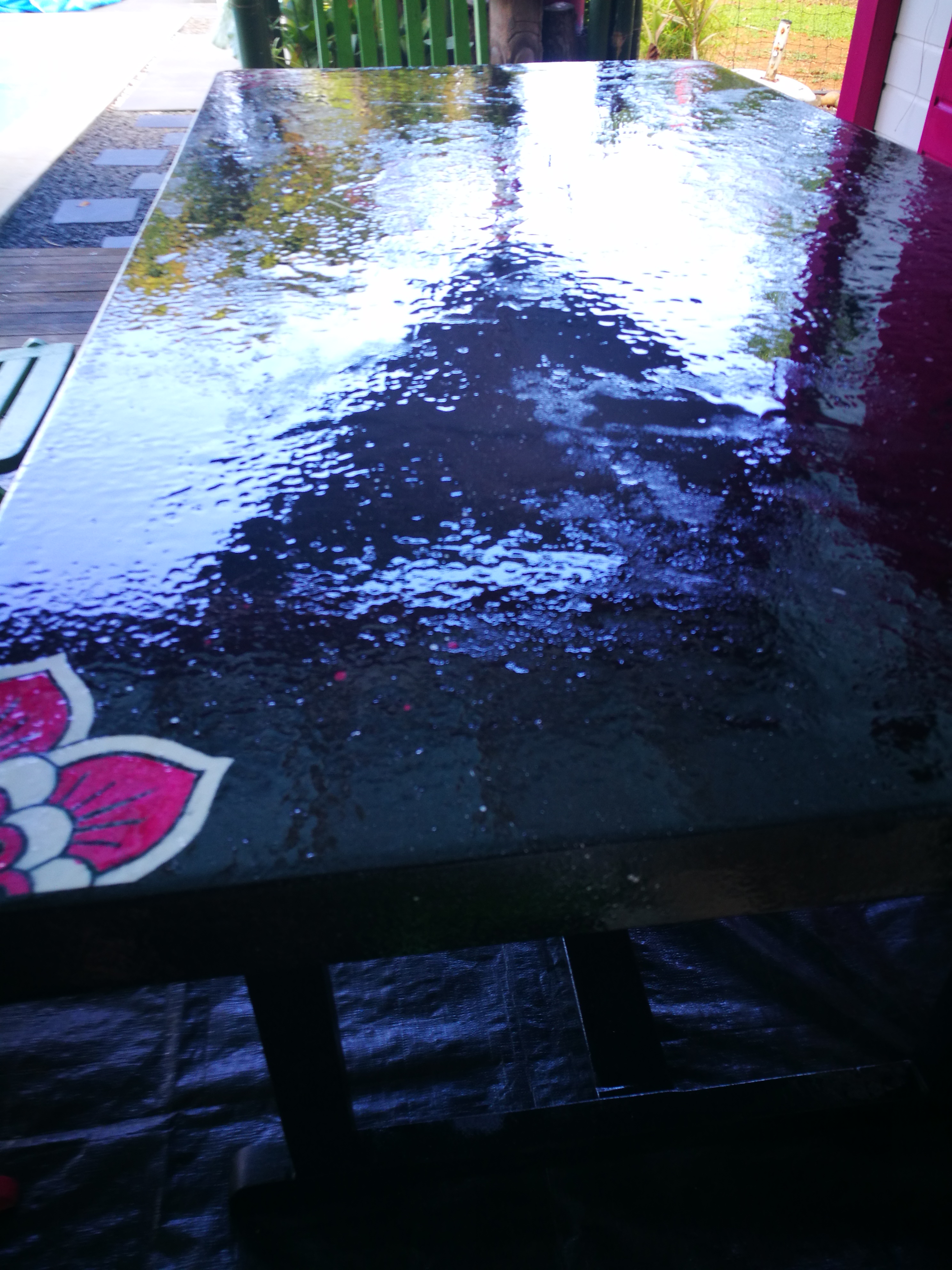 J ai voulu resiner un plateau de table. La resine a durci tres rapidement et je me retrouve avec un aspect atroce.