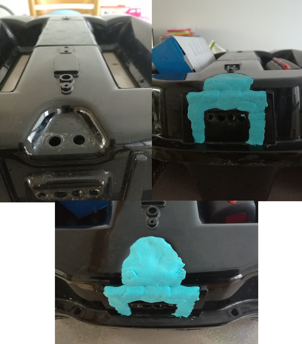 Pour le moulage du capot, il me semblerait plus facile d'ajouter un quatrième morceau de moule pour faire le tableau arrière qui parait à angle droit sur la photo.