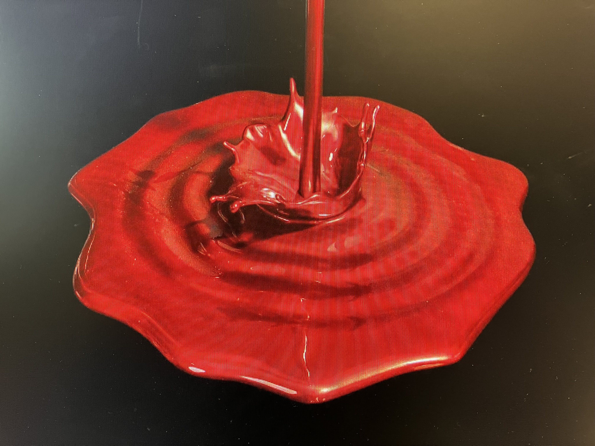 Pour le moulage, il faut fabriquer soit une boîte de coulée soit une chape, bien étanche et couler le RTV dans le trou de coulée situé au point le plus haut du modèle, penser à créer des évents d'air là où il y a des contre-dépouilles notamment sous la corole issue du splach.