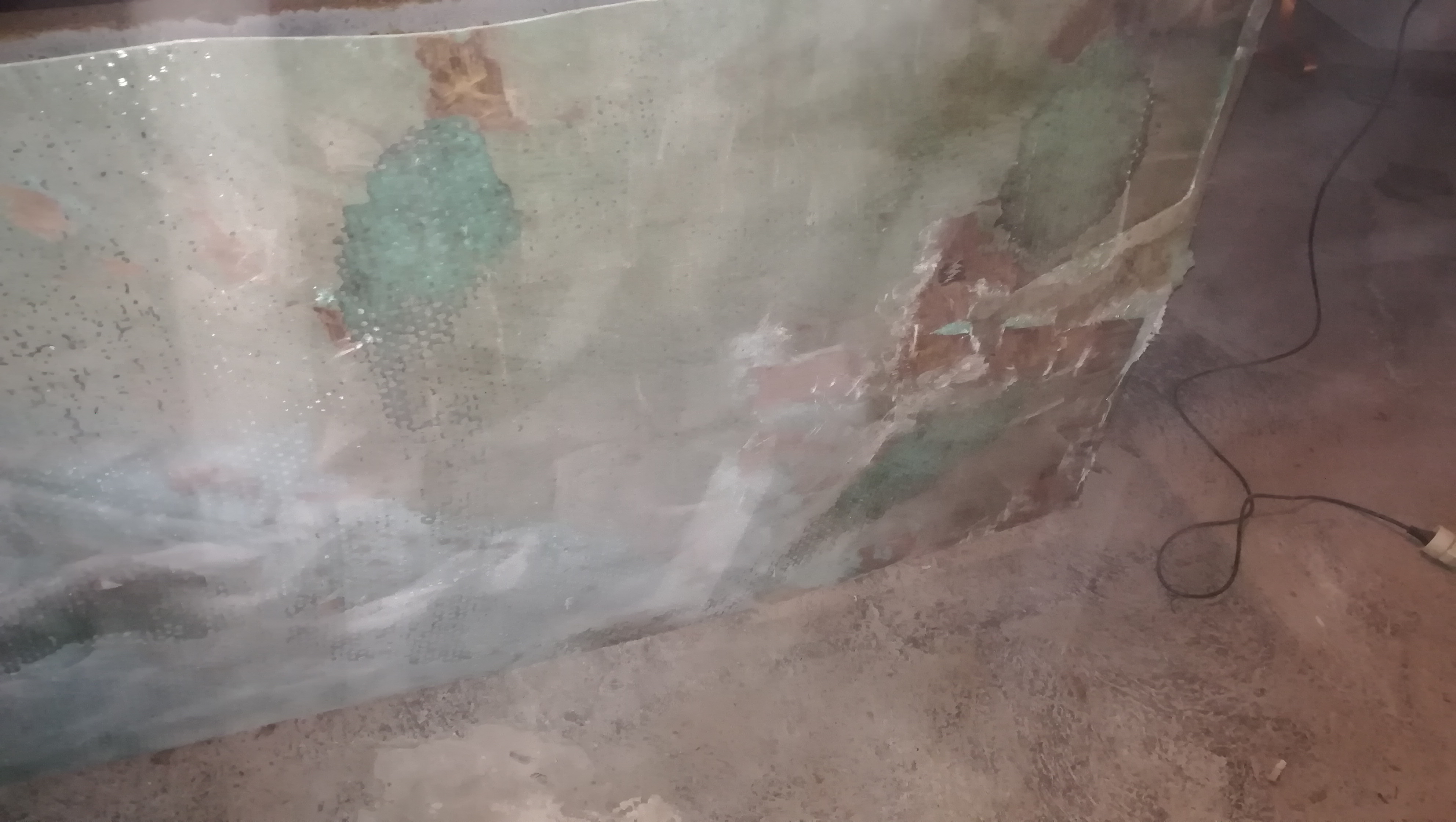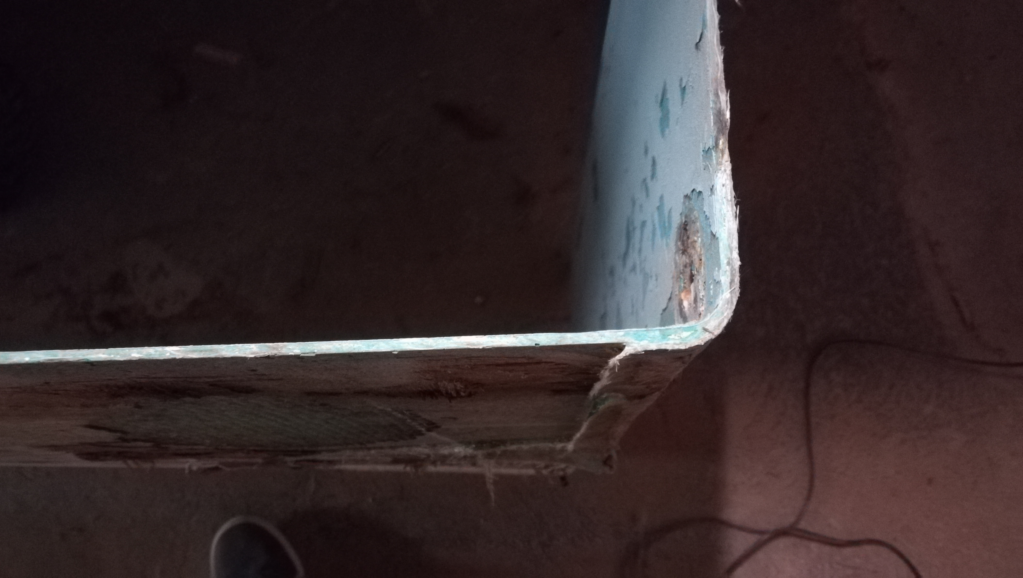 Il faut que vous ponciez tout l'intérieur découvert grossièrement sans attaquer le stratifié surtout puis le dépoussiérer. Après un examen minutieux, s'il y a des zones où le stratifié est blanchâtre ou bien s'il y a des fibres décollées, il y a eu un choc mal ou pas réparé auquel cas il faudra le faire avant de reposer votre fond de cockpit.