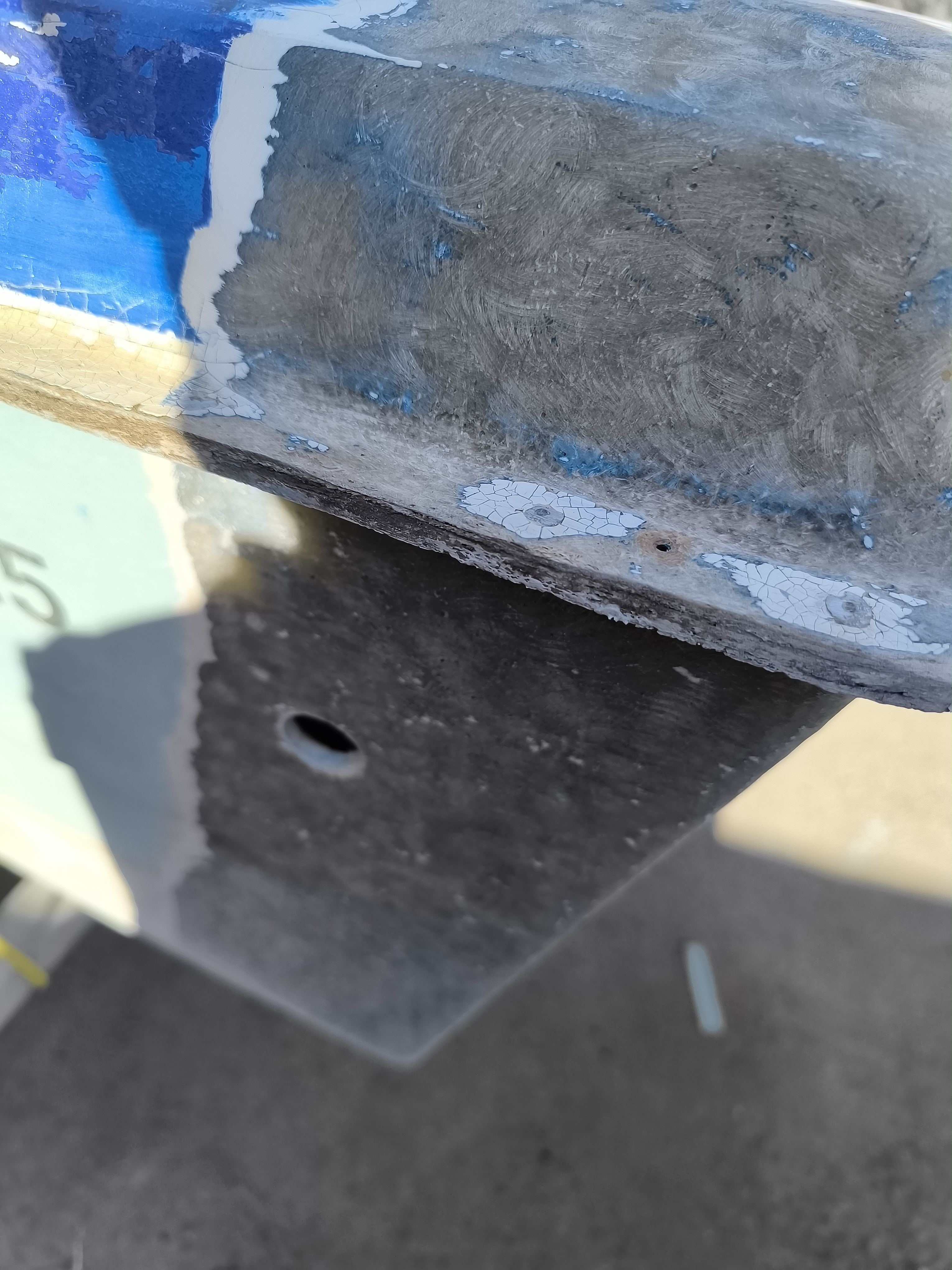 faut-il d'après vous stratifiér en gardant cette arrête ou la couper pour coller a plat . Sur 20 cms il y a 3 rivets qui tiennent coque haut sur coque bas.
