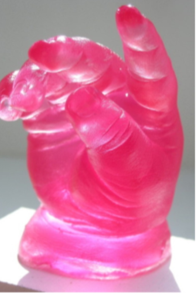 Il n'y a pas d'effet particulier sur la deuxième photo, les pied et main ont été coulés avec une résine cristal teintée puis quand elle a été en gel, il a suffit de couler la suite du moulage en résine moins teintée. Pour ce faire, il faut créer un master puis le mouler pour pouvoir faire votre coulée en "tableau".