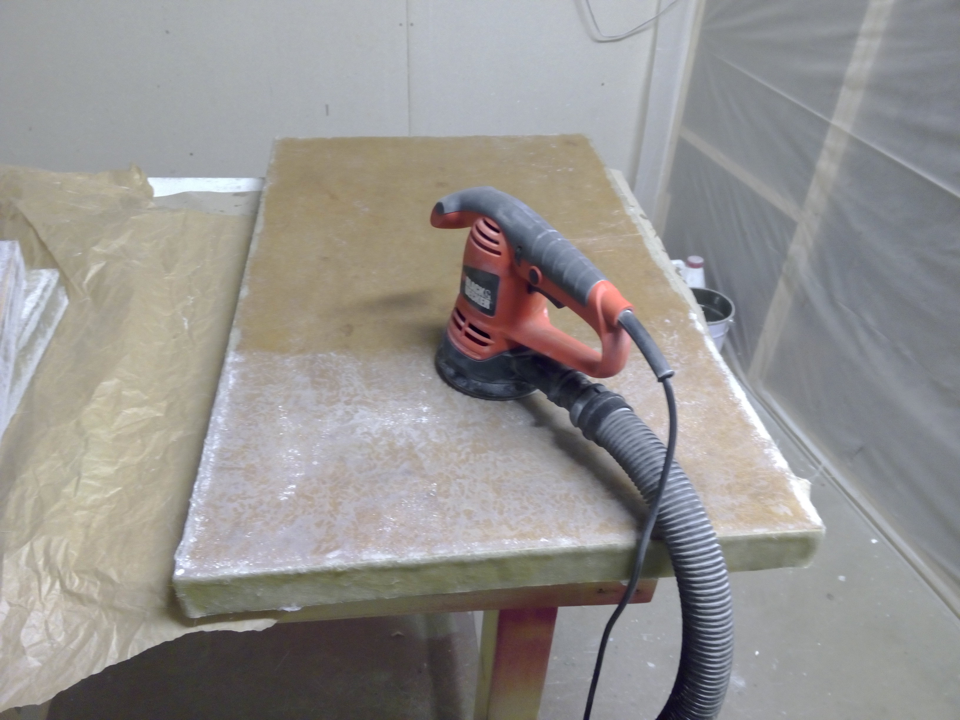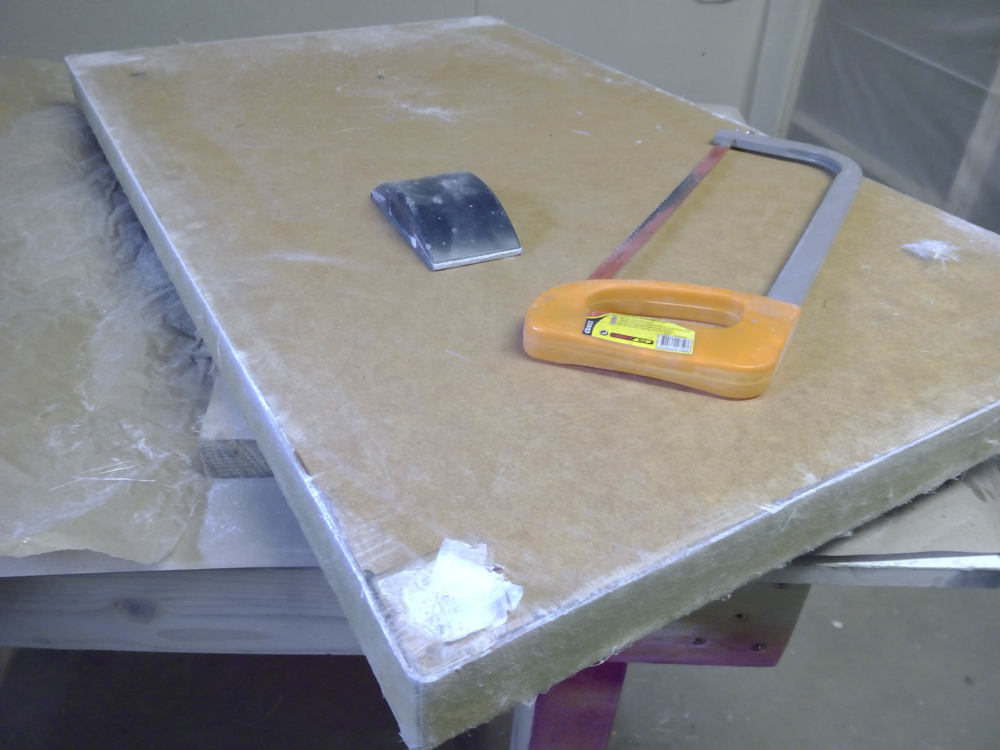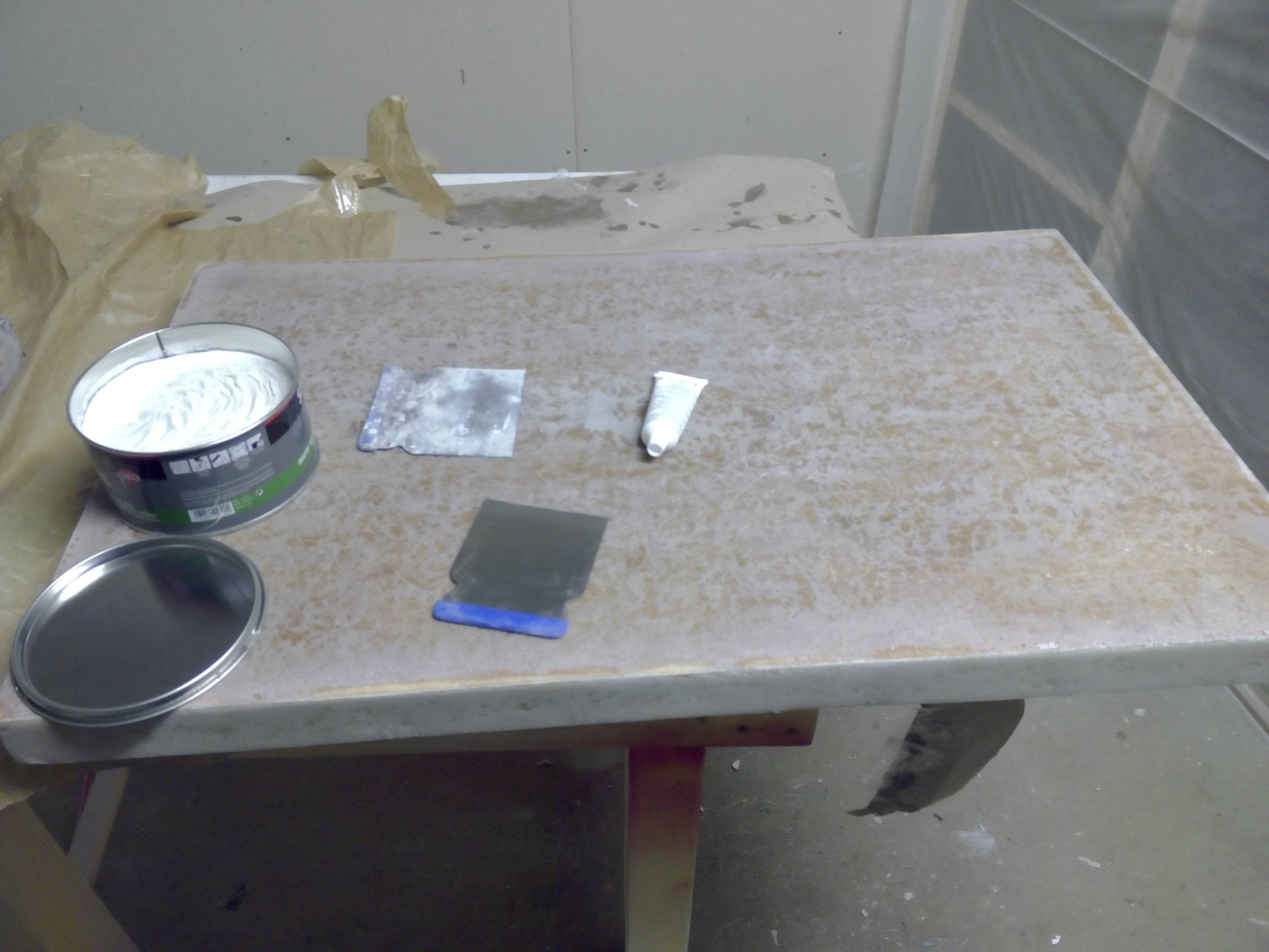 Astuce si la surface est facile toute simple, vous pouvez utiliser du tissu de délaminage sur un mat histoire d'avoir une surface déjà assez lisse à mastiquer-poncer, ça vous évitera de la marchandise et de l'huile de coude, allez voir par là "tissu d'arrachage".