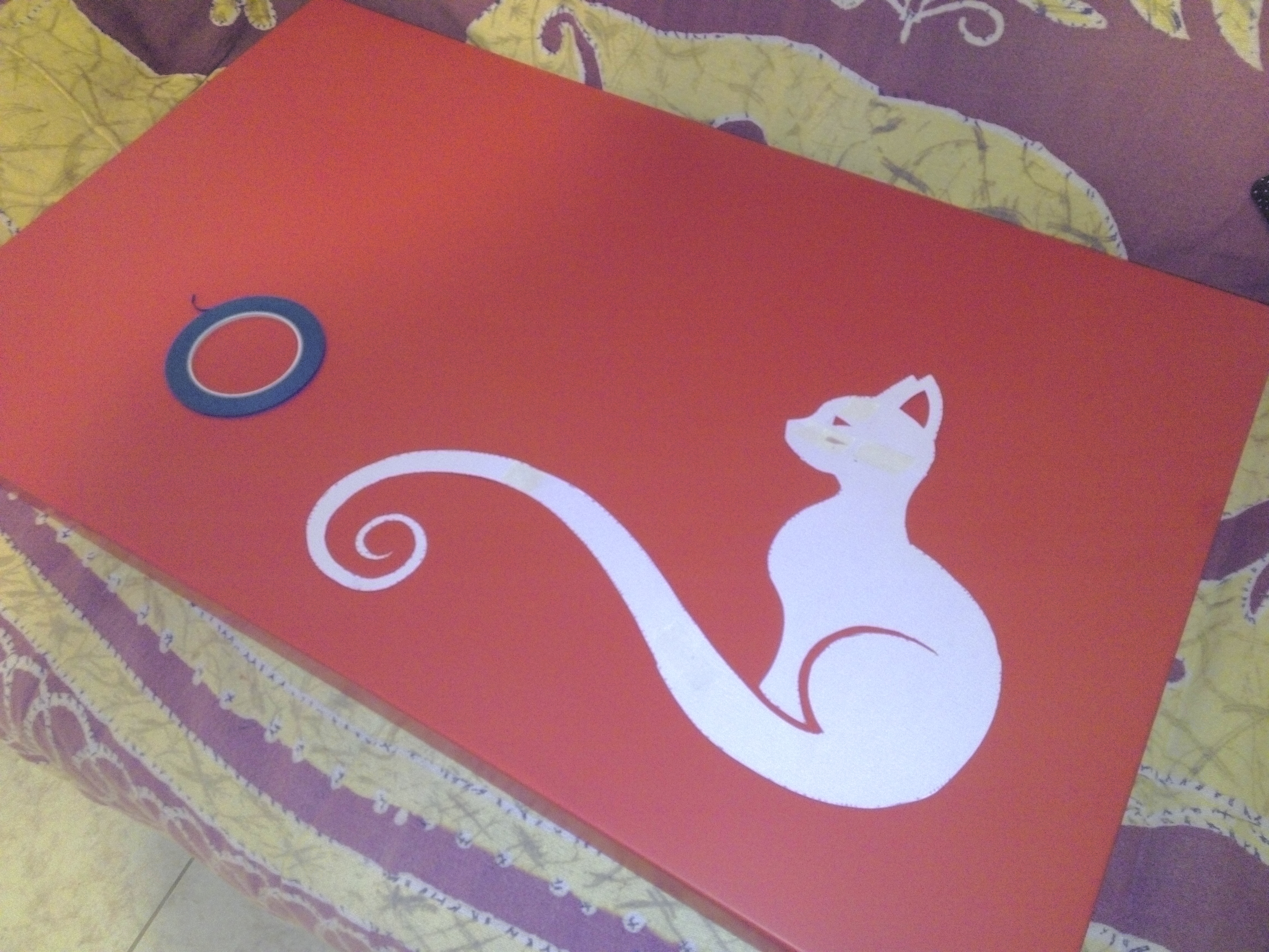 C'est une table Ikea, un stratifié/colléjesaispasquoi que j'ai dejà poncé et peint a la bombe y'a des années, ça n'a pas tenu. sans doute une histoire de primaire d'accroche sur lequel j'avais fait l'impasse.