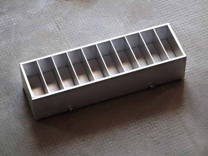 J'ai déjà fabriqué un moule démontable en aluminium mais il est peu pratique car le démoulage est difficile - trop de rigidité et le plâtre accroche un peu à l'aluminium malgré la vaseline. (voir photo).