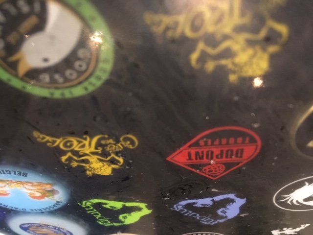 Nous avons eu le projet de faire une table basse en "capsules de bière". nous avons donc récupéré des capsules, nous les avons collées sur un plateau en bois peint, puis nous avons fais un cerclage.