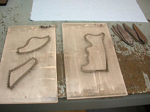 une fois monté mon gabarit male sur le pantographe je decoupe la forme de mon bois (dans l'exemple) et je monte ensuite le gabarit femelle et fais le fraisage dans de l'acier, le bois et l'acier s'ajustent ainsi pilepoil si je puis dire....
