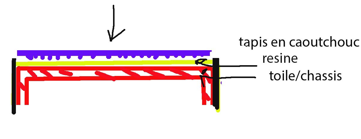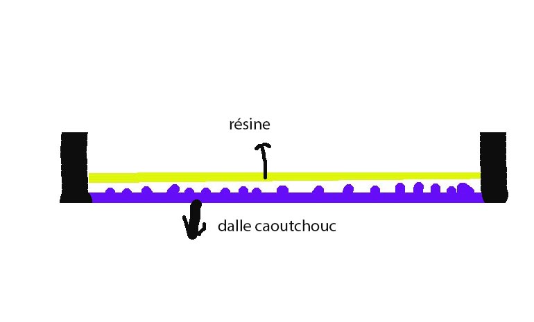 donc poser la dalle en caoutchouc, sur une résine '; mettre un poids dessus, et ensuite "décoller" , pour obtenir les trous, crés par les picots