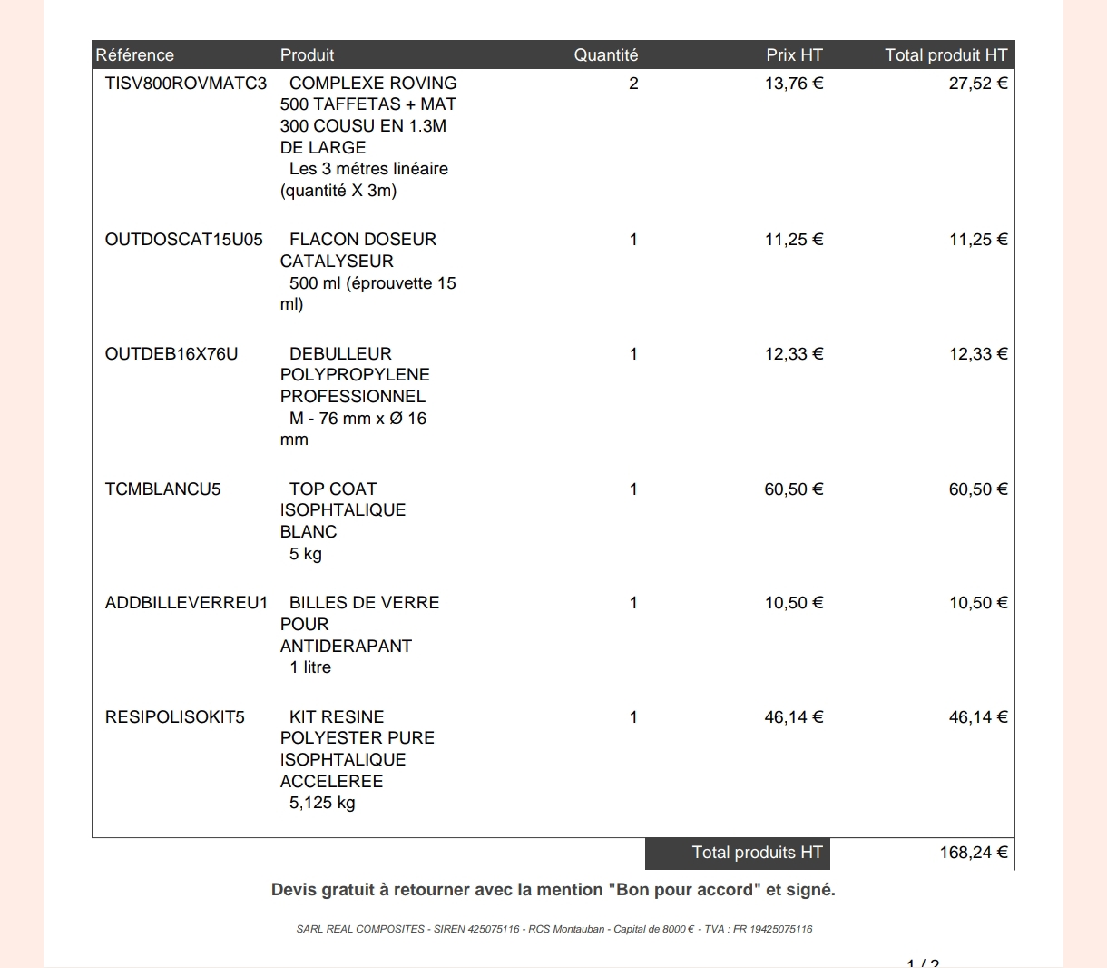 Vous nous passerez votre prévision de devis et on regardera s'il n'y a pas d'incohérences ou de manque, par contre nous ne validons jamais les quantités commandées au risque de nous tromper.