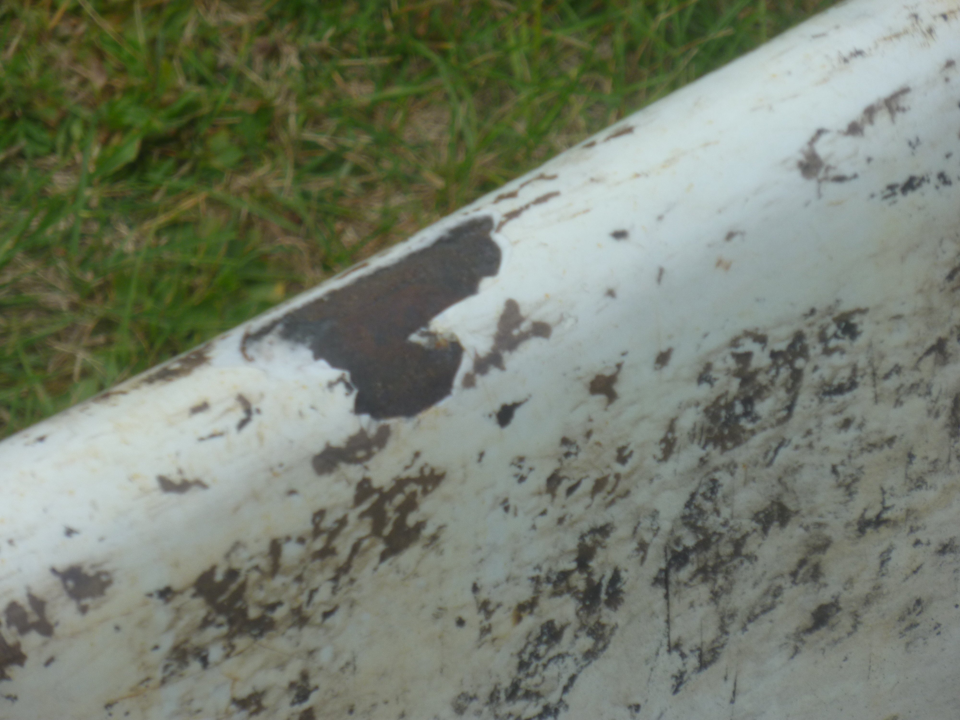 2) réparation au mastic des zone dont émail à sauté, décapage des parties rouillé.