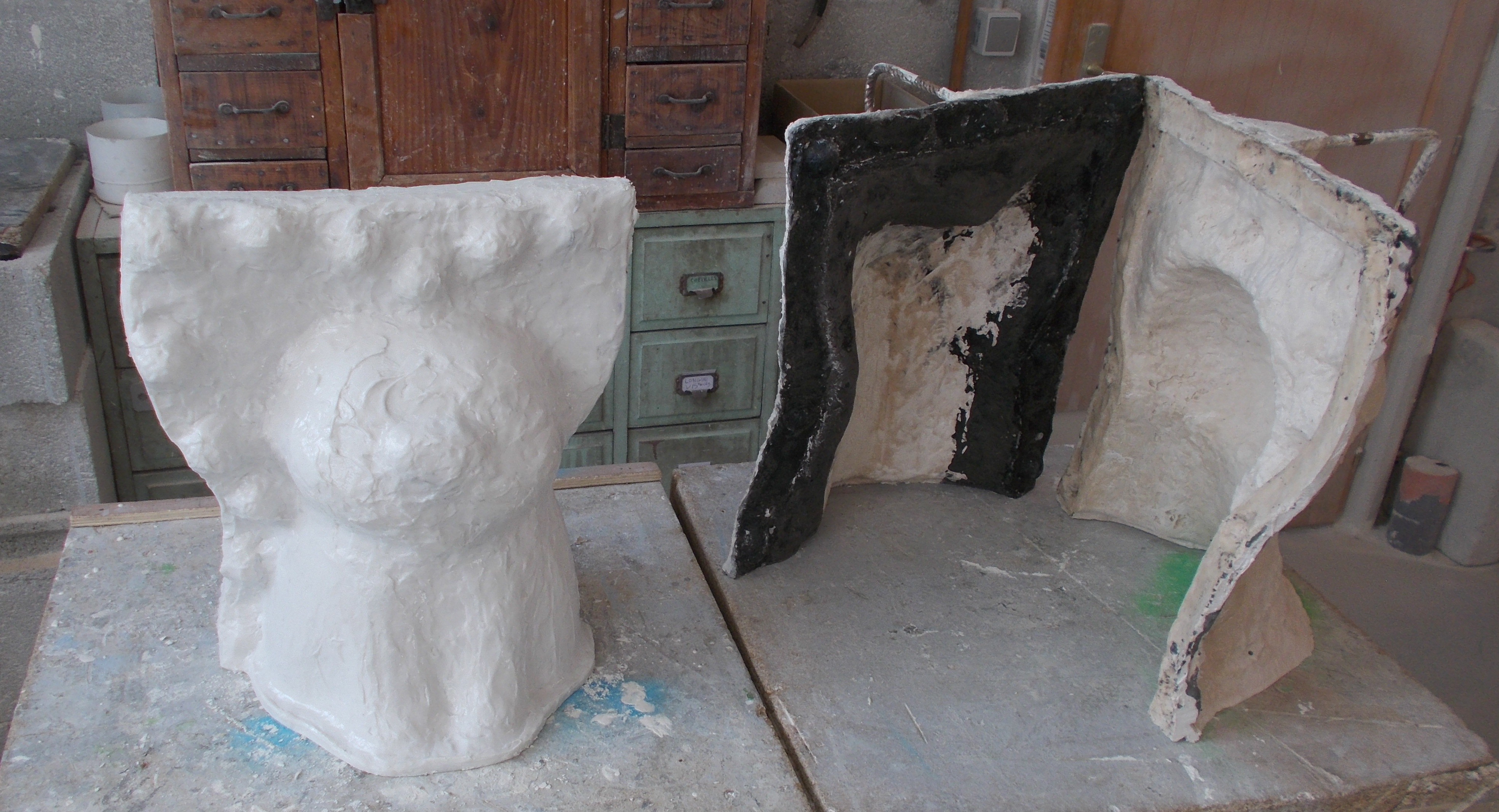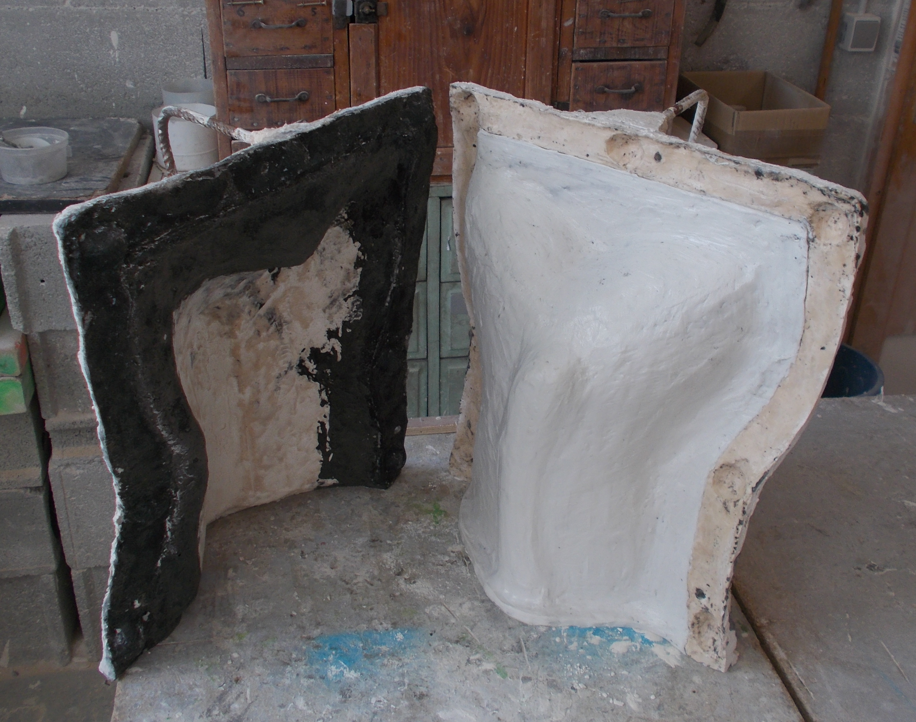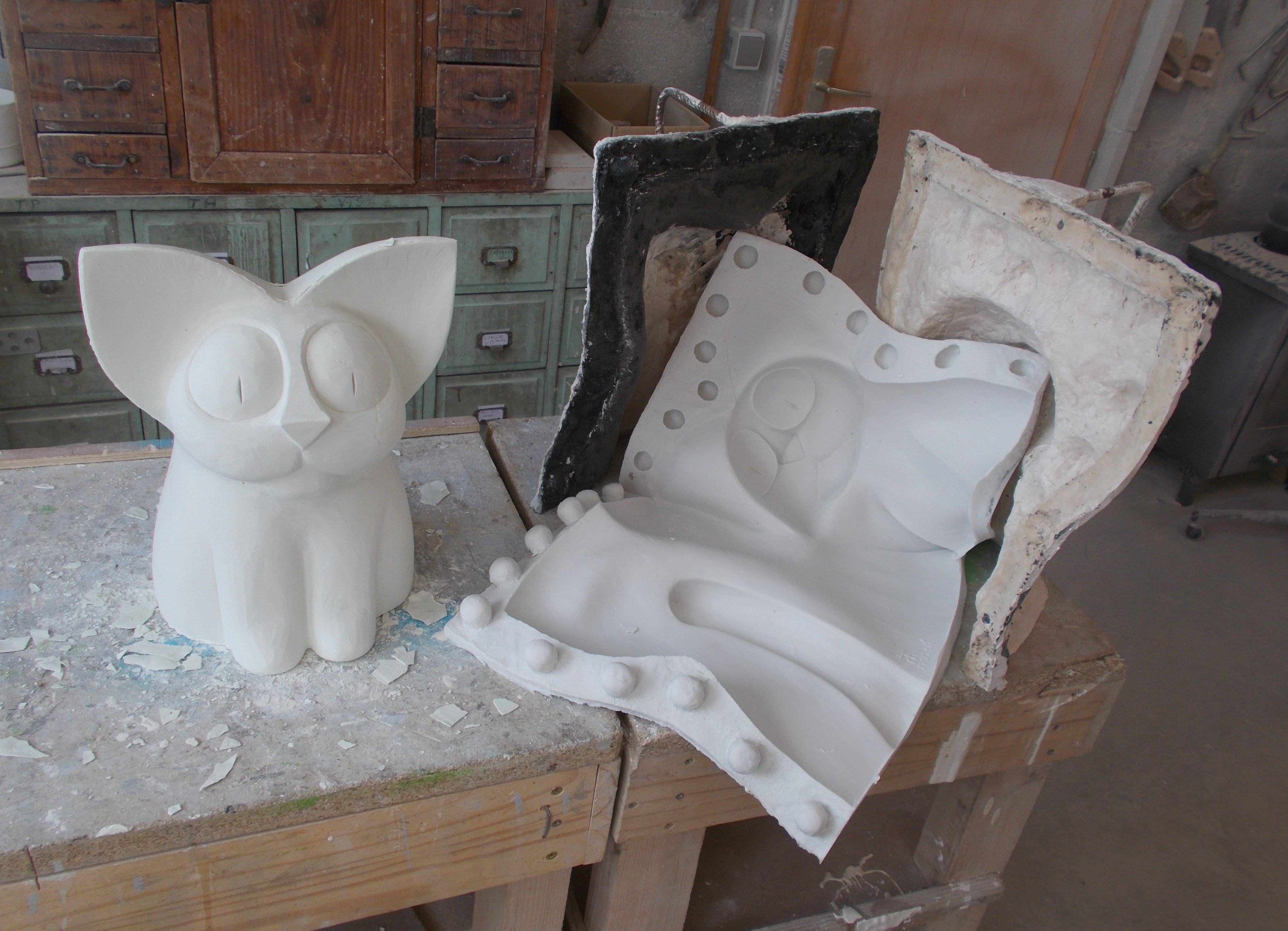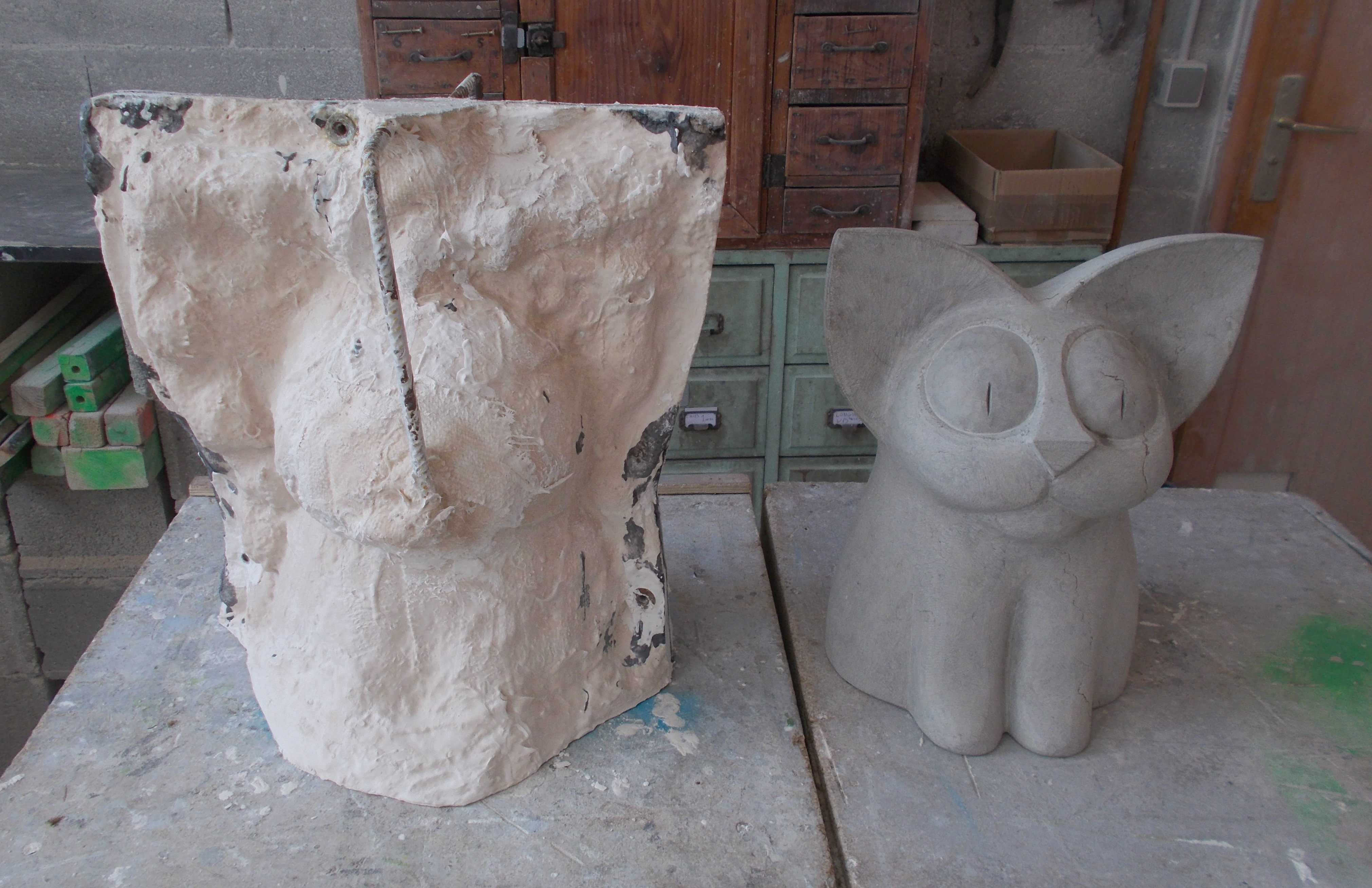 J'ai crée le moule autour d'un chat en pierre calcaire dur.