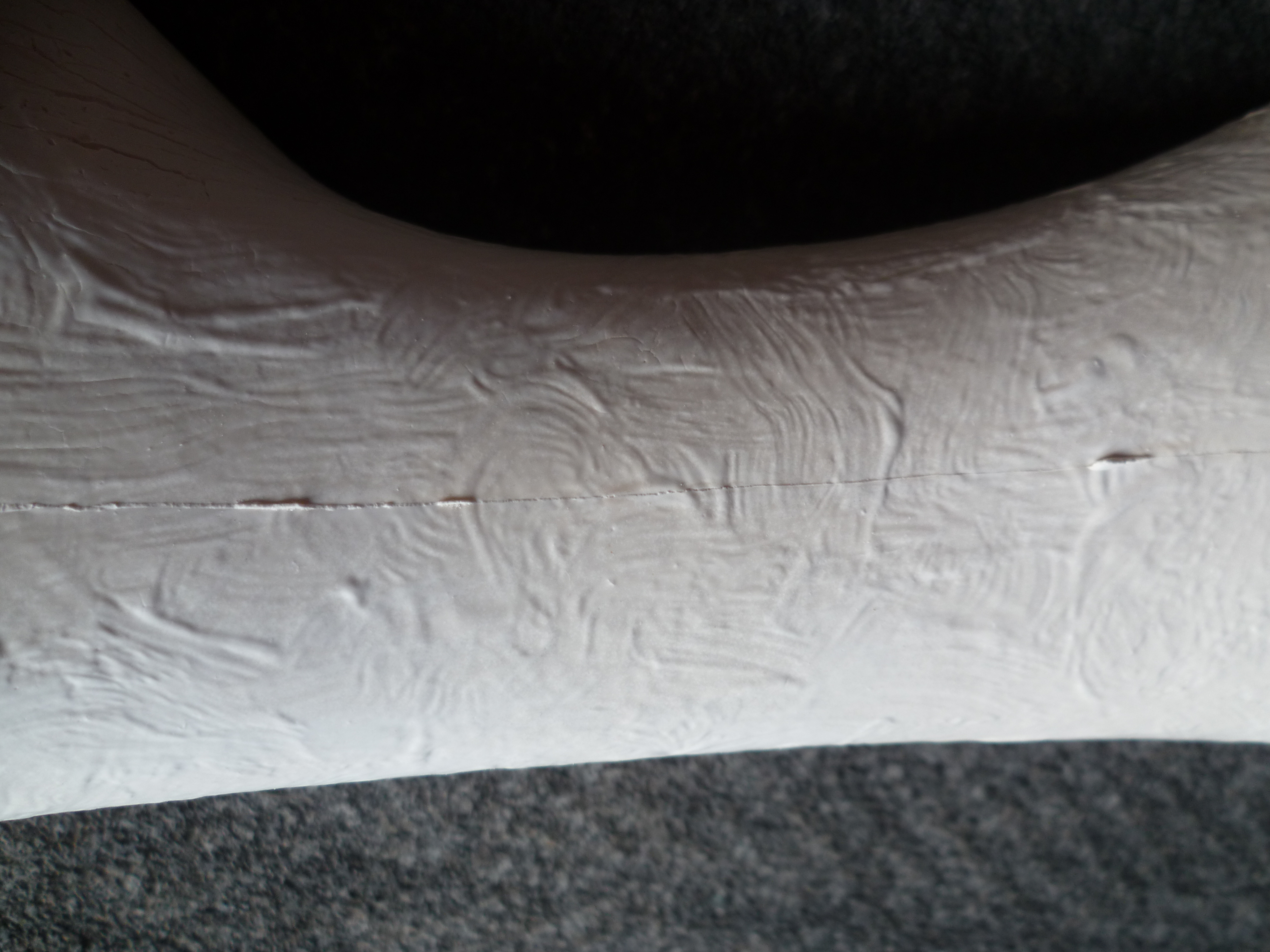 Mais non ! La gorge c'est parfait n'y touchez pas. Il faut faire quelques plots de centrage entre la gorge et votre maître-modèle pour être sûr de remettre parfaitement en place vos deux parties lors de la coulée des futures pièces dans le moule.