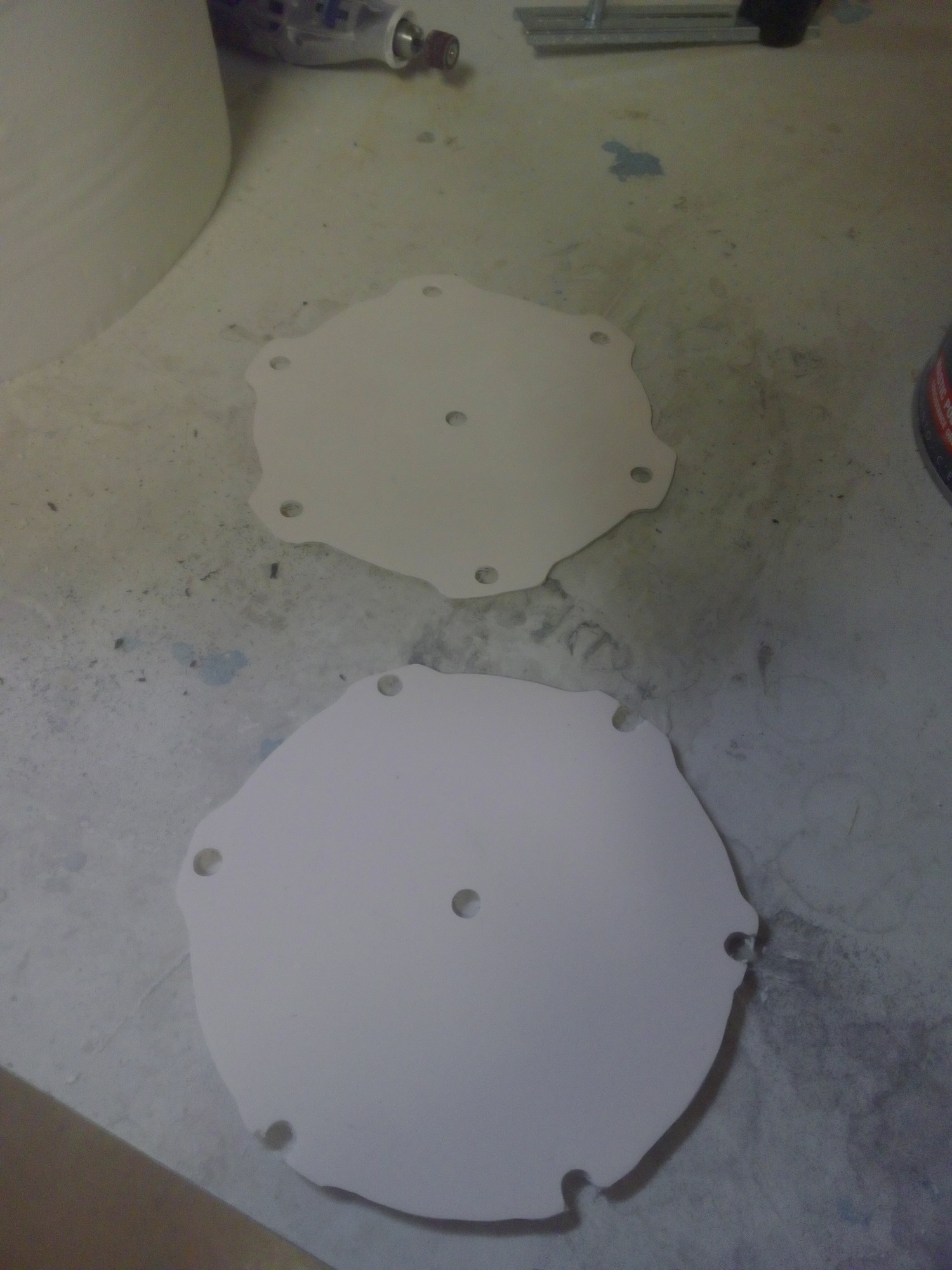 Puis, d'une plaque de stratifié résine polyester on ajoute du mastic de finition