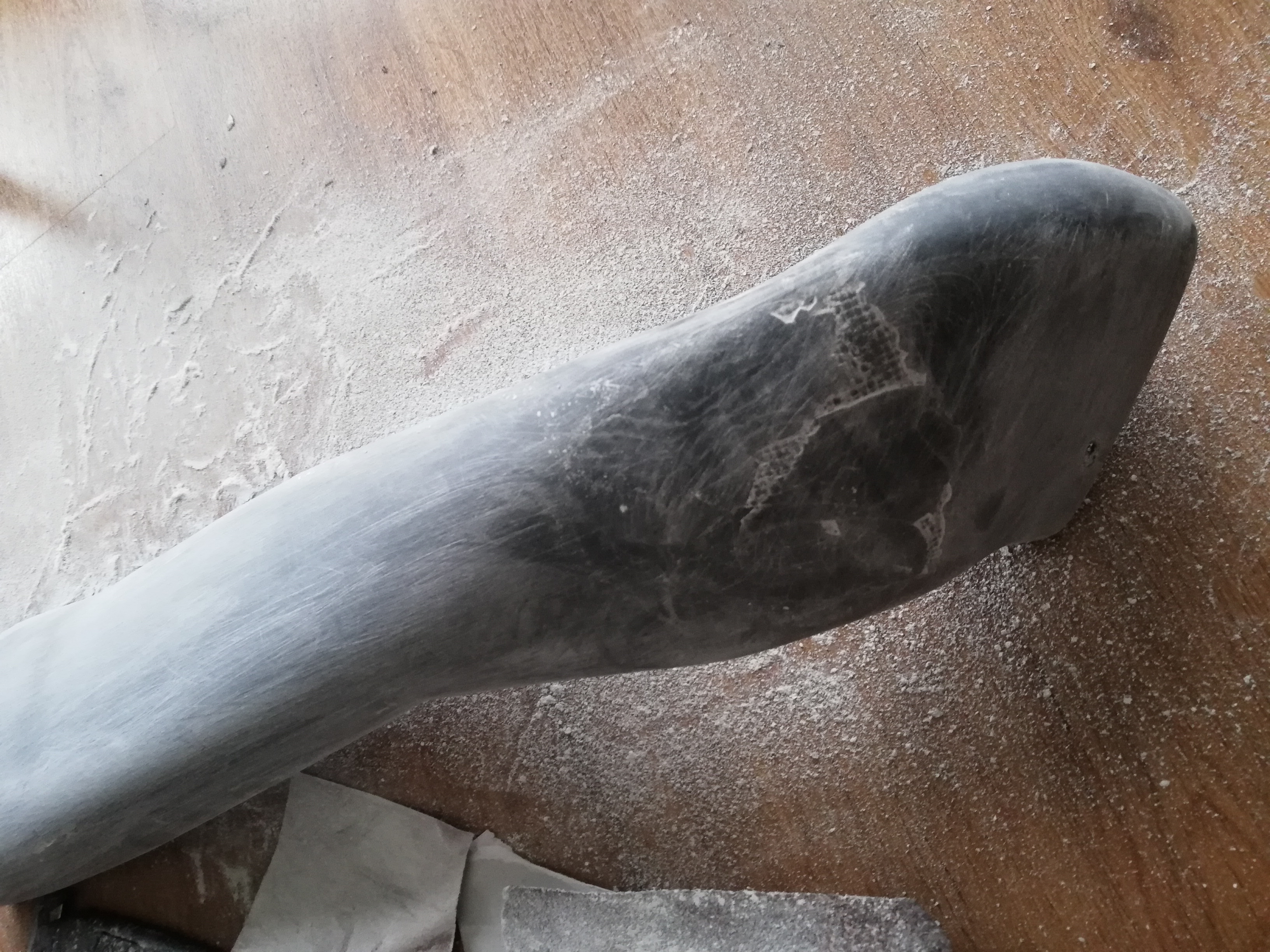il faut que tu ponce jusqu’à la trame du carbone attention quand la poussière de ponçage devient noir c'est que tu est au carbone,