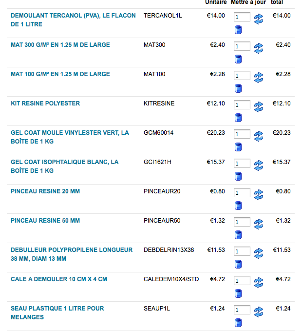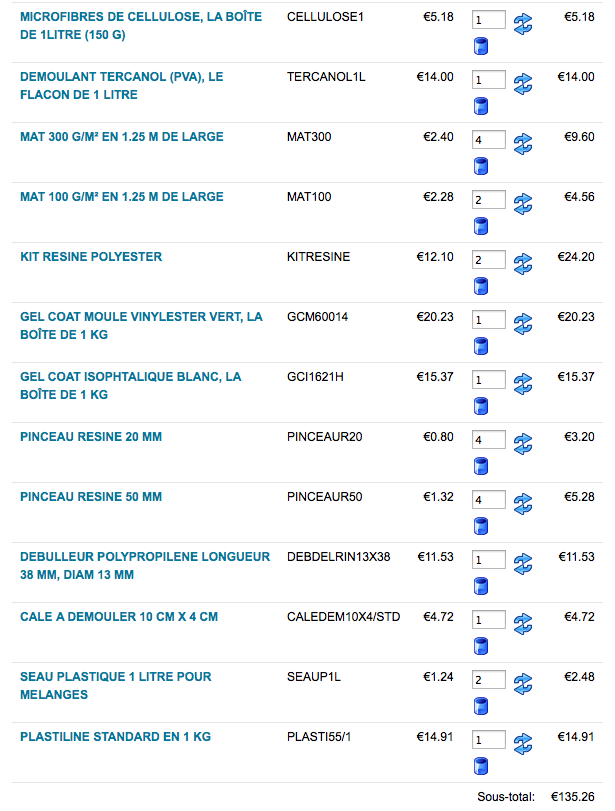 Pour votre liste de matériel ça me parait bon si vous n'avez pas besoin de protection corporelle… mais vous aurez besoin de Plastiline standard pour faire vos plans de joint. Croyez bien qu'on ne pousse pas à la consommation ni les gens à faire des trucs qui nous paraissent impossibles mais là franchement vous n'avez pas le choix de la méthode pour faire un moule en dur.