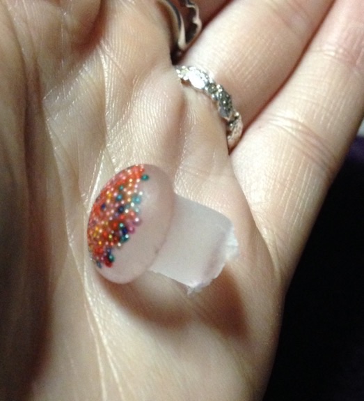 Tentative deux. Première couche, puis introduction de paillettes, et seconde couche