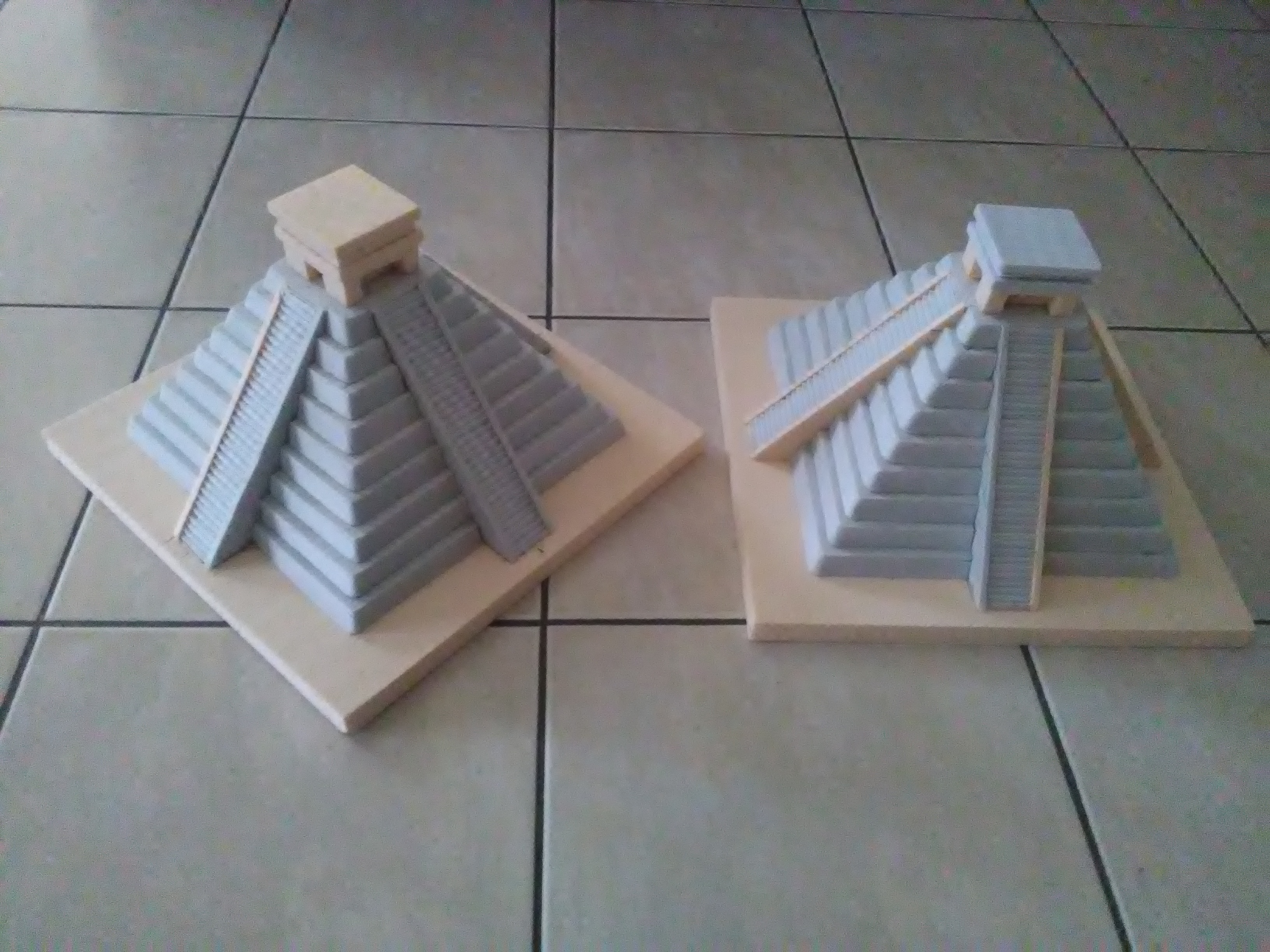 Re bonjour, comme promis je vous montre mes fameuses pyramides aztèques en polystyrène extrudé, que j'ai construite en collant plusieurs pièces sculptés (colle a bois).