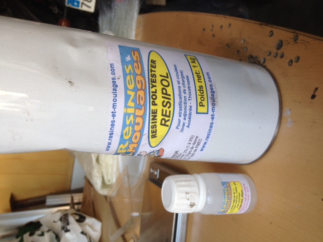 - soit vous utilisez de la résine fibrée toute prête voir ICI que vous pouvez immédiatement après application recouvrir d'un morceau de mat en débullant délicatement pour éviter d'avoir à poncer