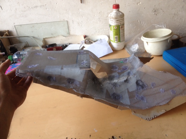 Donc résumé : carton mis à la forme puis scotché puis une couche de Tercanol.