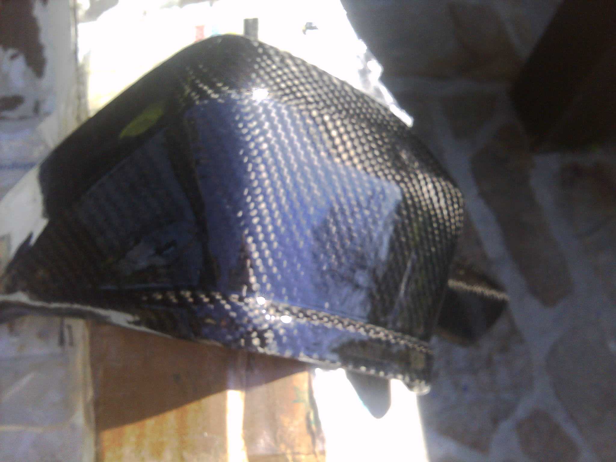 Je me suis donc lancé...ai commandé le matos...ai mastiqué mon master pour eviter les angles droits ... puis poncé poncé poncé...ai fait un moule polyester...puis poncé poncé poncé...ai ciré ciré ciré mon moule... ai stratifié mon carbone avec de la resine epoxy...ai mis le tout sous vide 12h... ai démoulé la pièce sans problème au bout de 24 h...