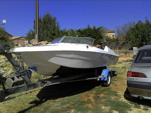 - vous stratifiez un mat 300 très très soigneusement débullé, vous laissez polymériser. S'il y a encore des petits défauts, il est encore temps de refiler un coup de ponçage puis dépoussiérage évidemment.