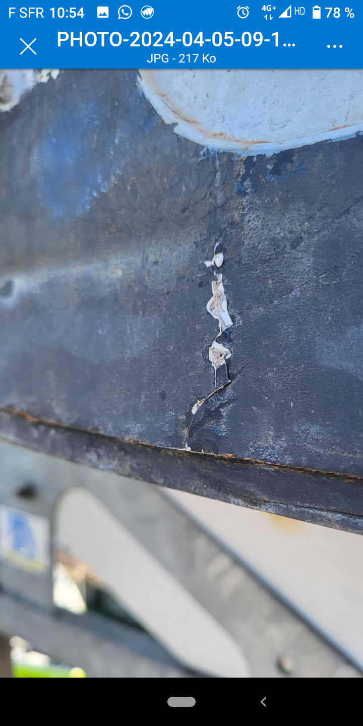 J'ai l'impression qu'ils ont pas fait déborder la stratification plus large que la réparation et par-dessus ils ont mastiquer mais le mastic fissure..et donc l'eau s'infiltre..