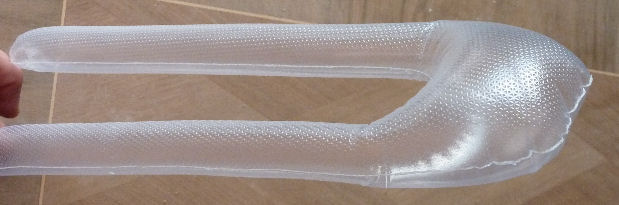 Le film n’est pas élastique donc il faut que ma baudruche soit au plus près de la forme du moule qui la reçoit, si elle est trop petite il n’y aura pas de compression des tissus, si elle est trop grande, elle est impossible à rentrer dans le moule sans la chiffonner. Donc sa mise en place est fastidieuse.