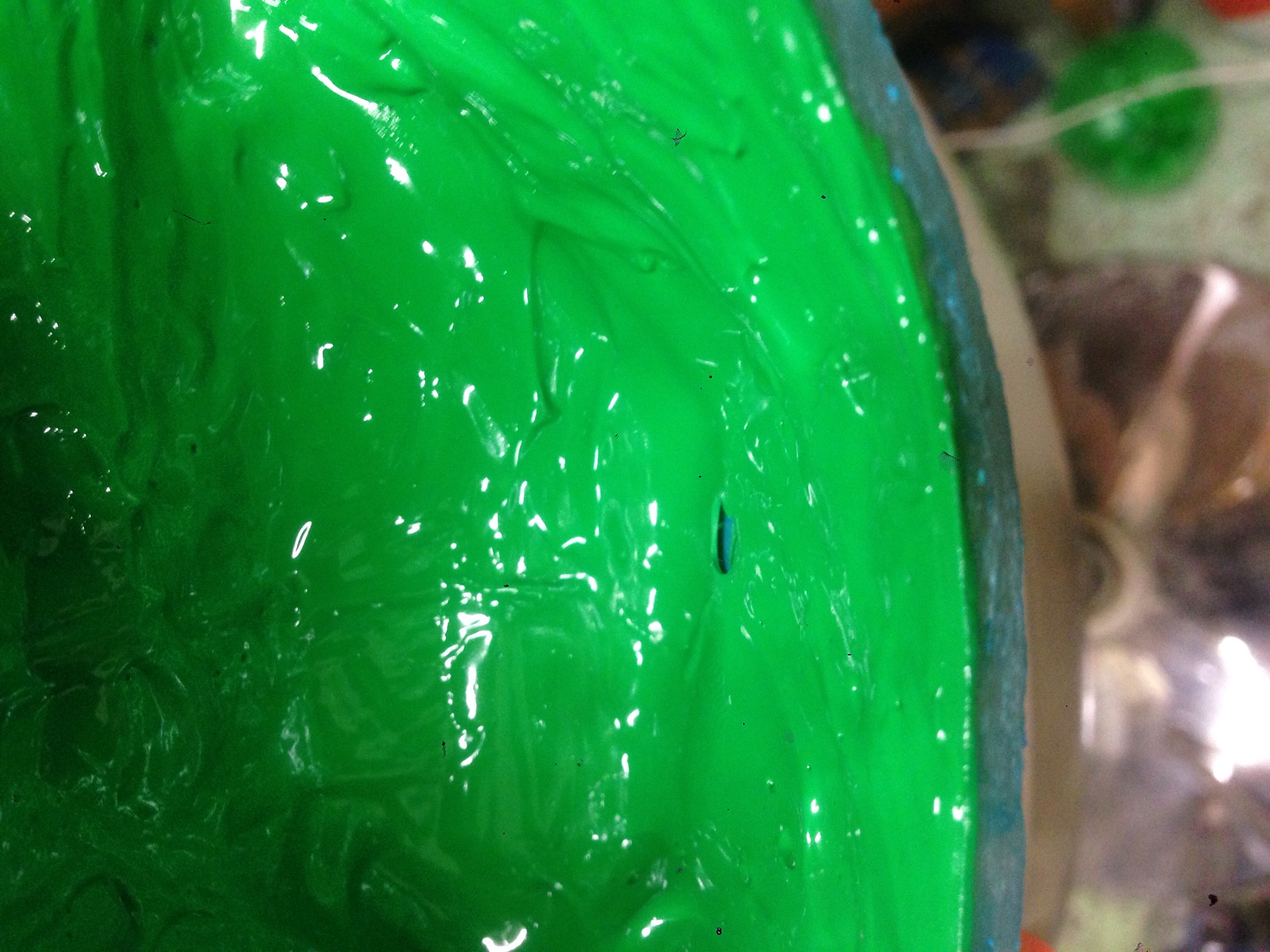 Hier apres avoir appliqué une couche de gelcoat de moule vert , il y a une grosse "bulle" qui s'est formé ( entre le master et le gelcoat)