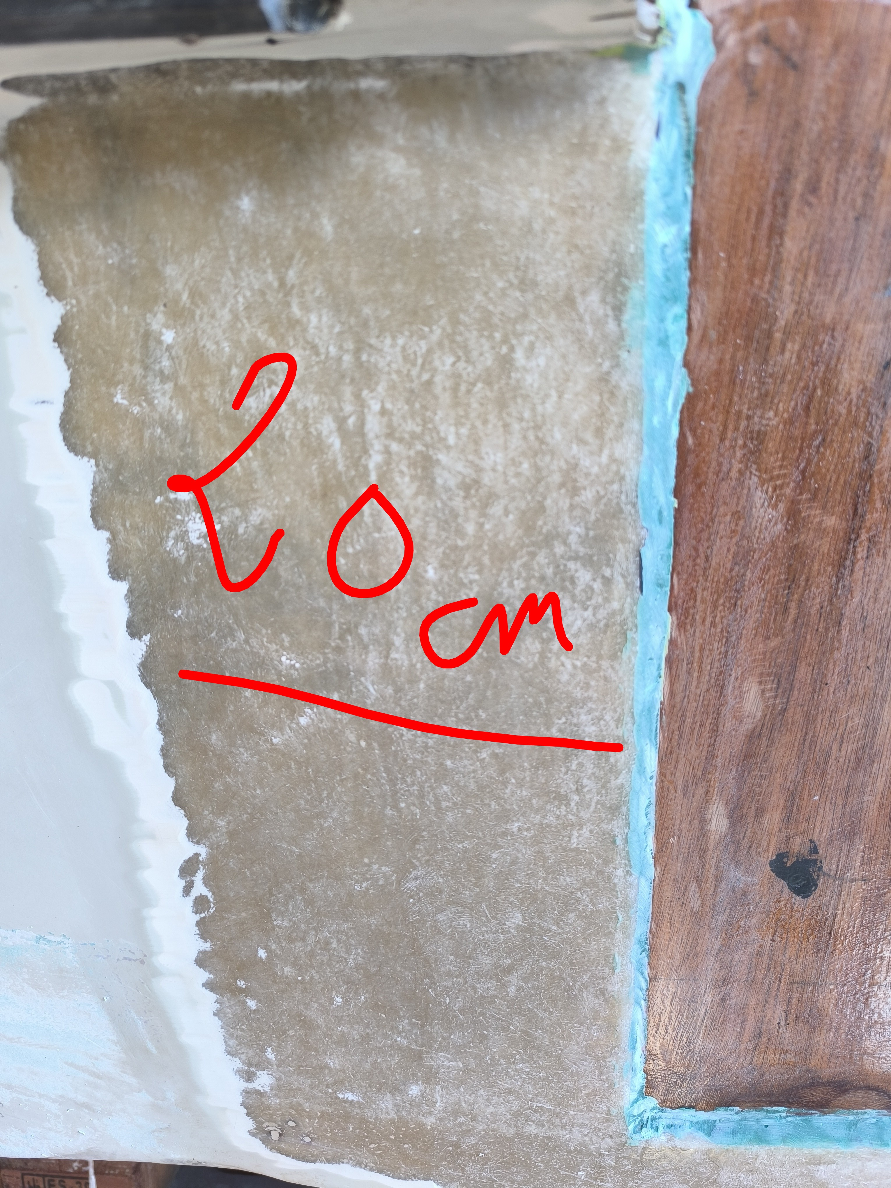 Oui du mat 450 j'ai lu ???? Qu'une épaisseur de mat 450 résiné fait 1mm en gros si je le rajoute mais uniquement sur la surface lcorrespondant au bois entre les couches mat 300 et roving 300 je devrais récupérer l'épaisseur en partie ???
