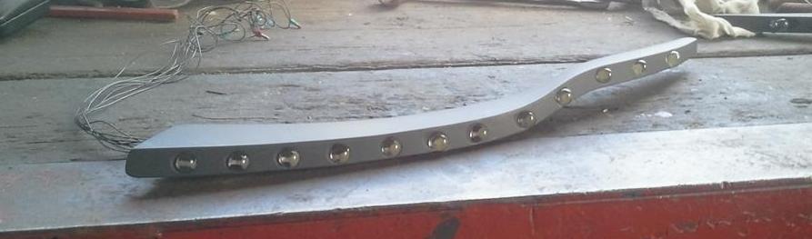 Pour le passage des câbles, j'ai réalisé une gorge en dessous de la lame, 8mm de profond sur 1 bon cm de large. Lorsque mes leds sont câblées, je colle les leds à la colle à chaud et je mets un point aussi sur le câblage qui est dans la gorge