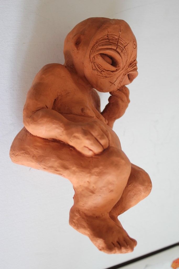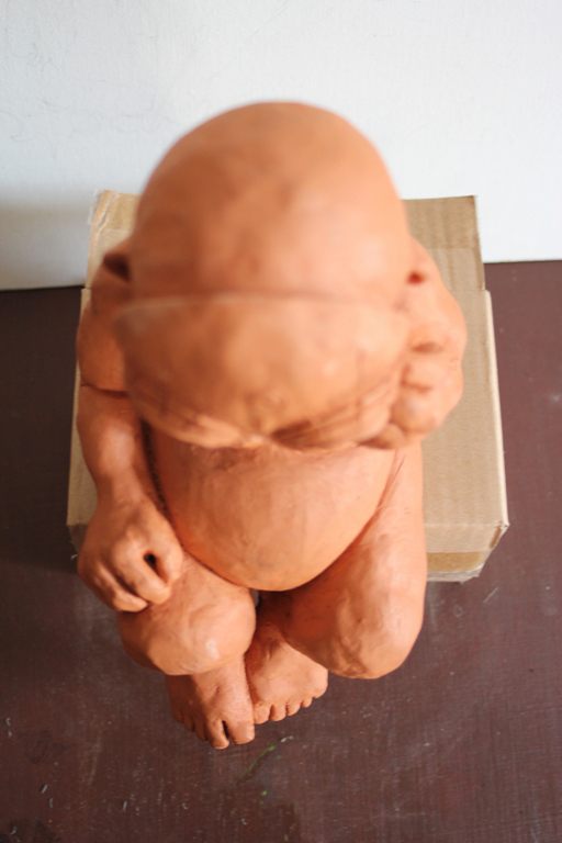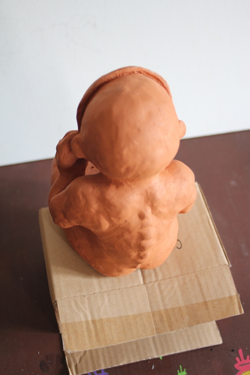 -Premier point ma réalisation (master) et en terre cuite personnage assis d'une trentaine de centimètre.