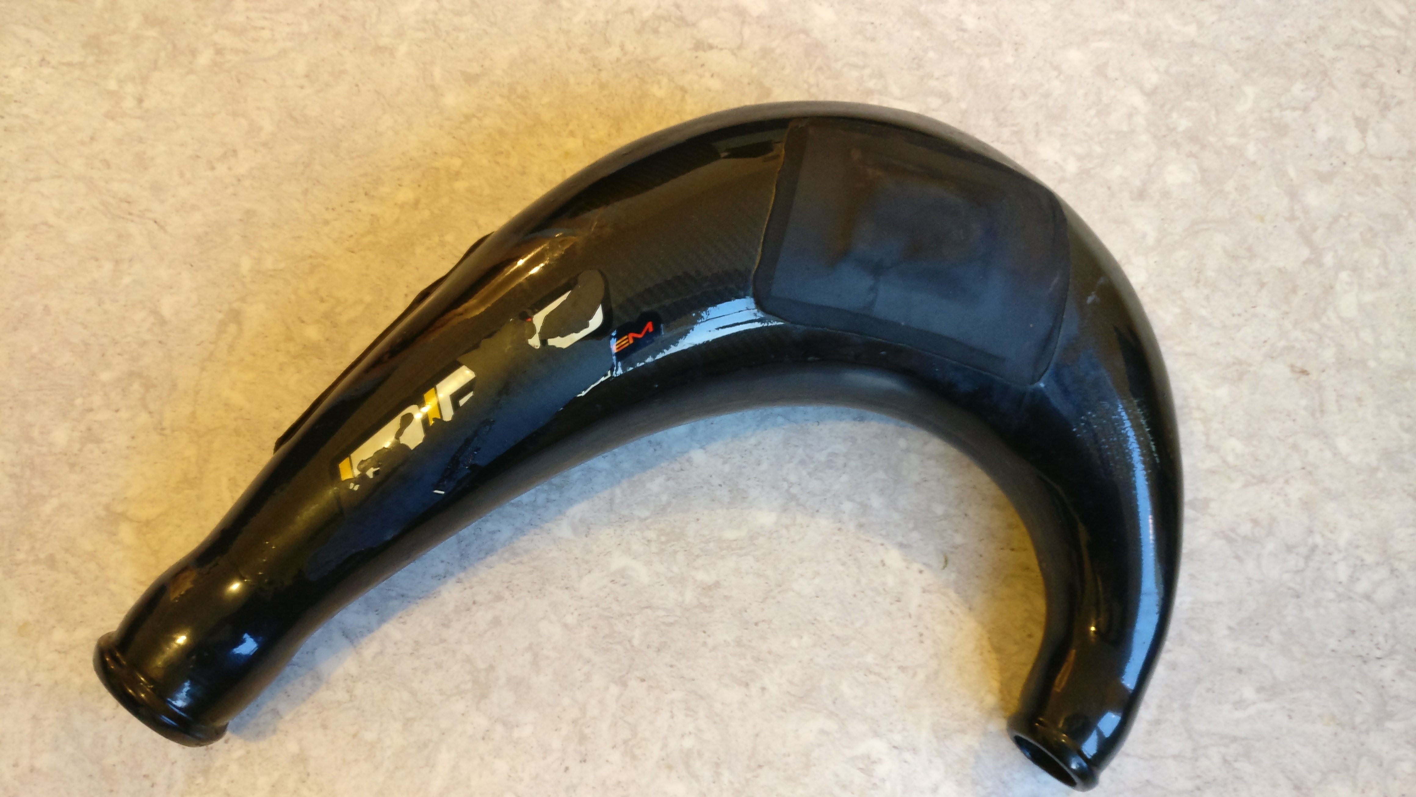 Voilà je possède un pot d'échappement de 2T en carbone pour jetski. Normalement refroidi par un débit d'eau à l'intérieur celui-ci a chauffé et le fibre c'est dégradé