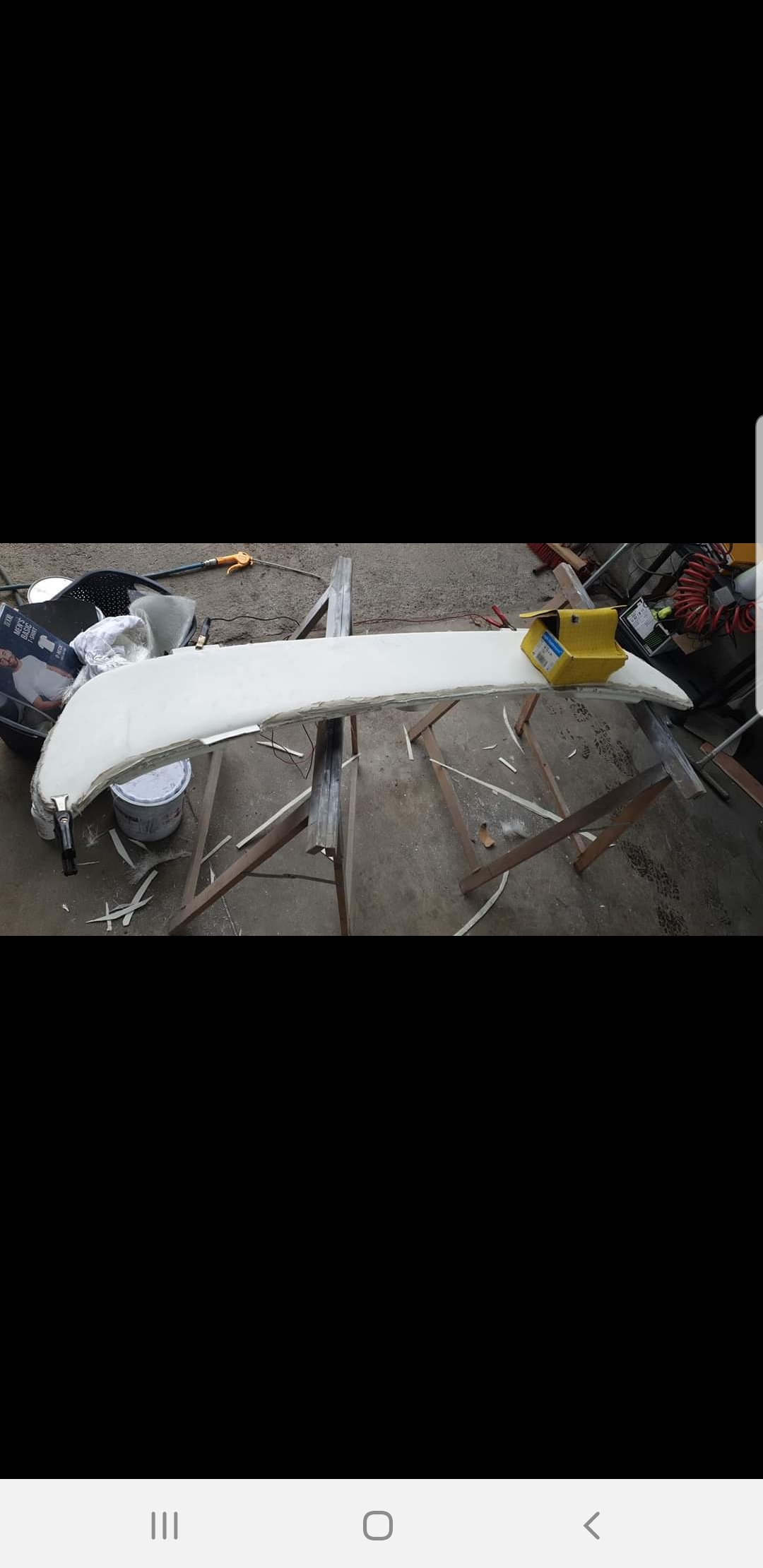 Collage des deux demi-ailerons puis stratification extérieure tout simplement. Ensuite ponçage-mastic-ponçage-peinture PU bi-composant si vous voulez que ça tienne un moment.