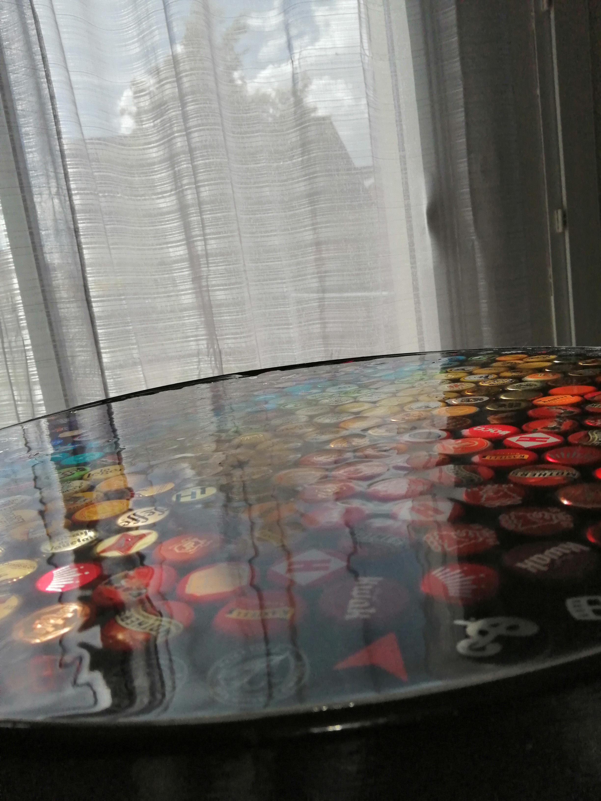 Je voudrais mettre ma resine sur le dessus vu qu'il y a déjà des bords tout autour. Et la couler sur des capsules de bières.