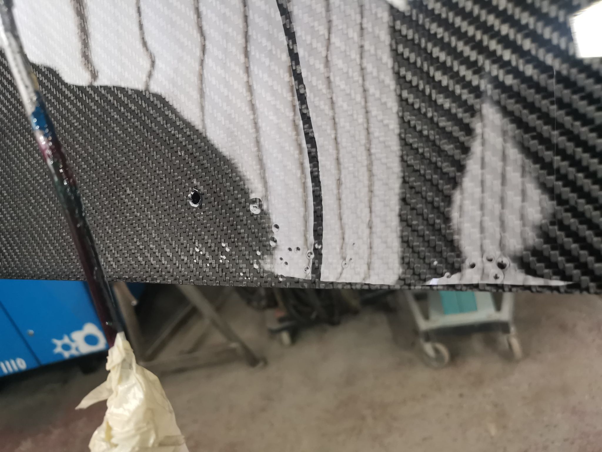 Le ponçage est absolument nécessaire quels que soit les démoulants utilisés. Il faut y aller doucement en effectuant un dépolissage complet sans entamer le tissu de carbone.