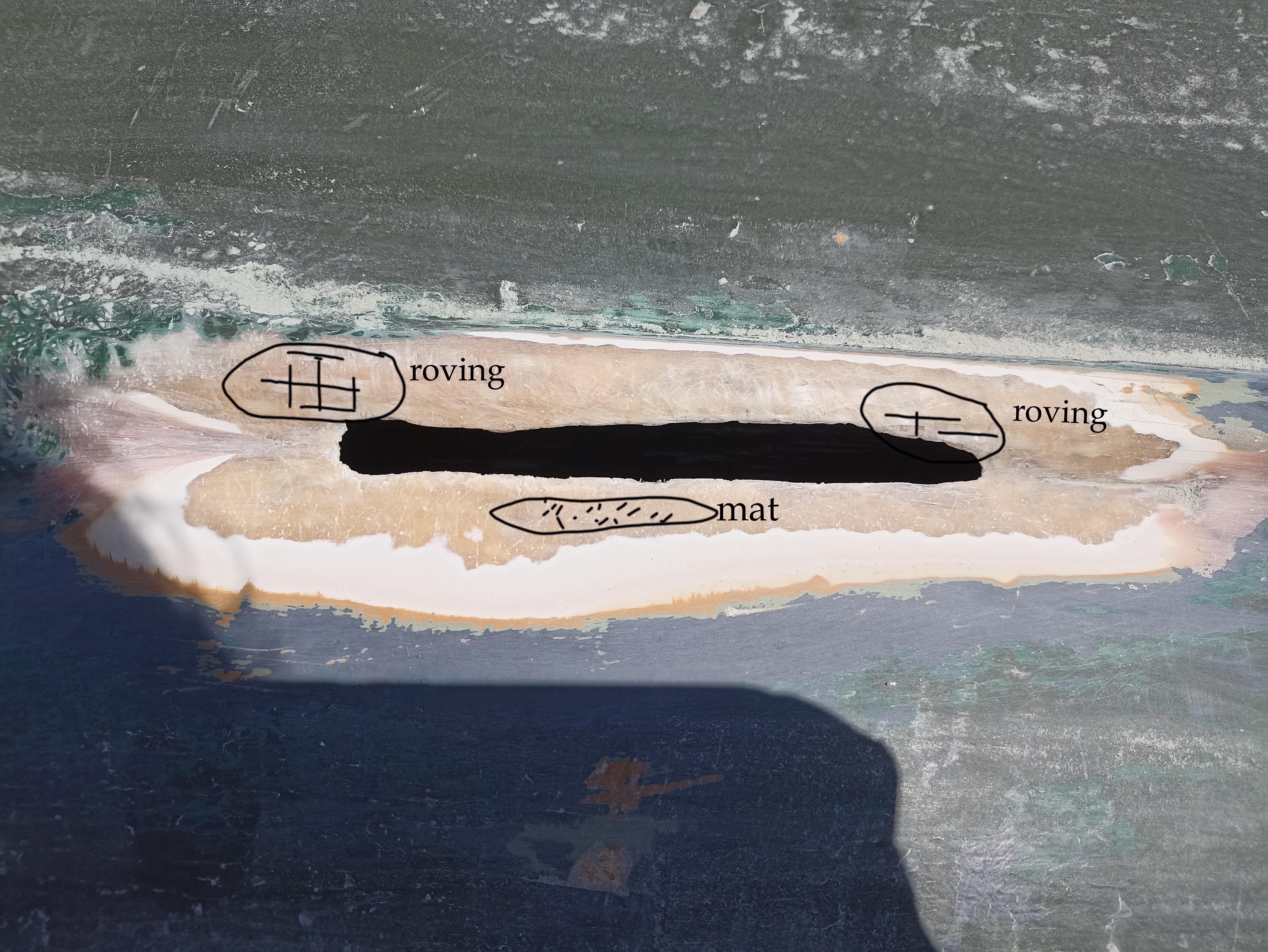 Pour ce qui est de la réparation en elle même, je pense avoir compris le principe, acétone avant application de résine polyester et mat de verre sur plusieurs couches avec plaque de bois d'un coté pour servir de support, ponçage puis topcoat pour l'étanchéité, je simplifie mais c'est ca dans l'idée ?