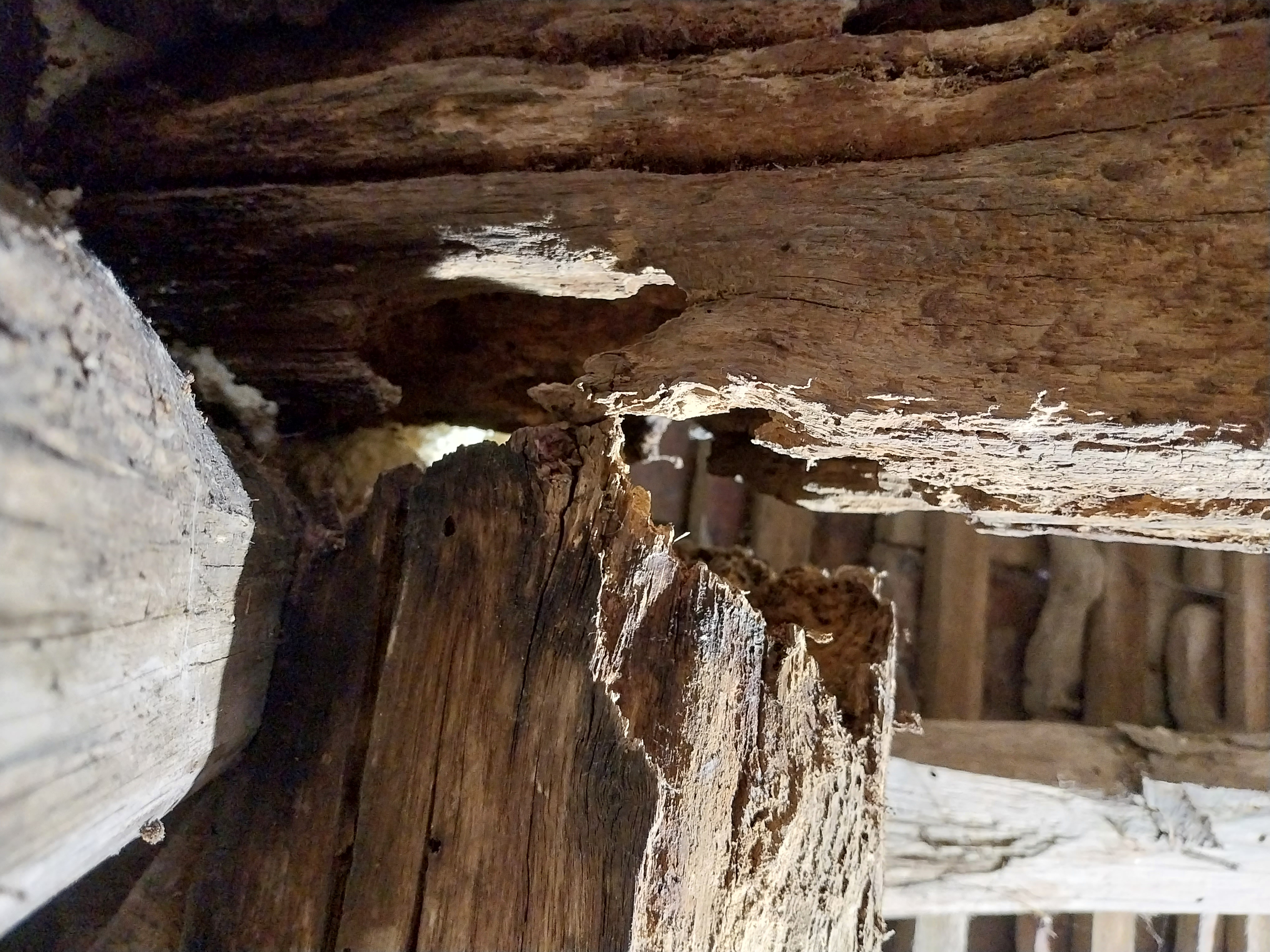 Je rénove un corps de ferme datant de la fin du 17éme, et suite à l'inspection de la charpente, je suis tombé sur une dégradation importante de 2 pièces de charpente. Sur une des fermes, les extrémités du poinçon et de la panne faitière qui sont normalement emboités par tenon/mortaise, sont complétement rongés par une infiltration d'eau de longues durée par le passé. Ces 2 éléments ne sont plus solidaires.