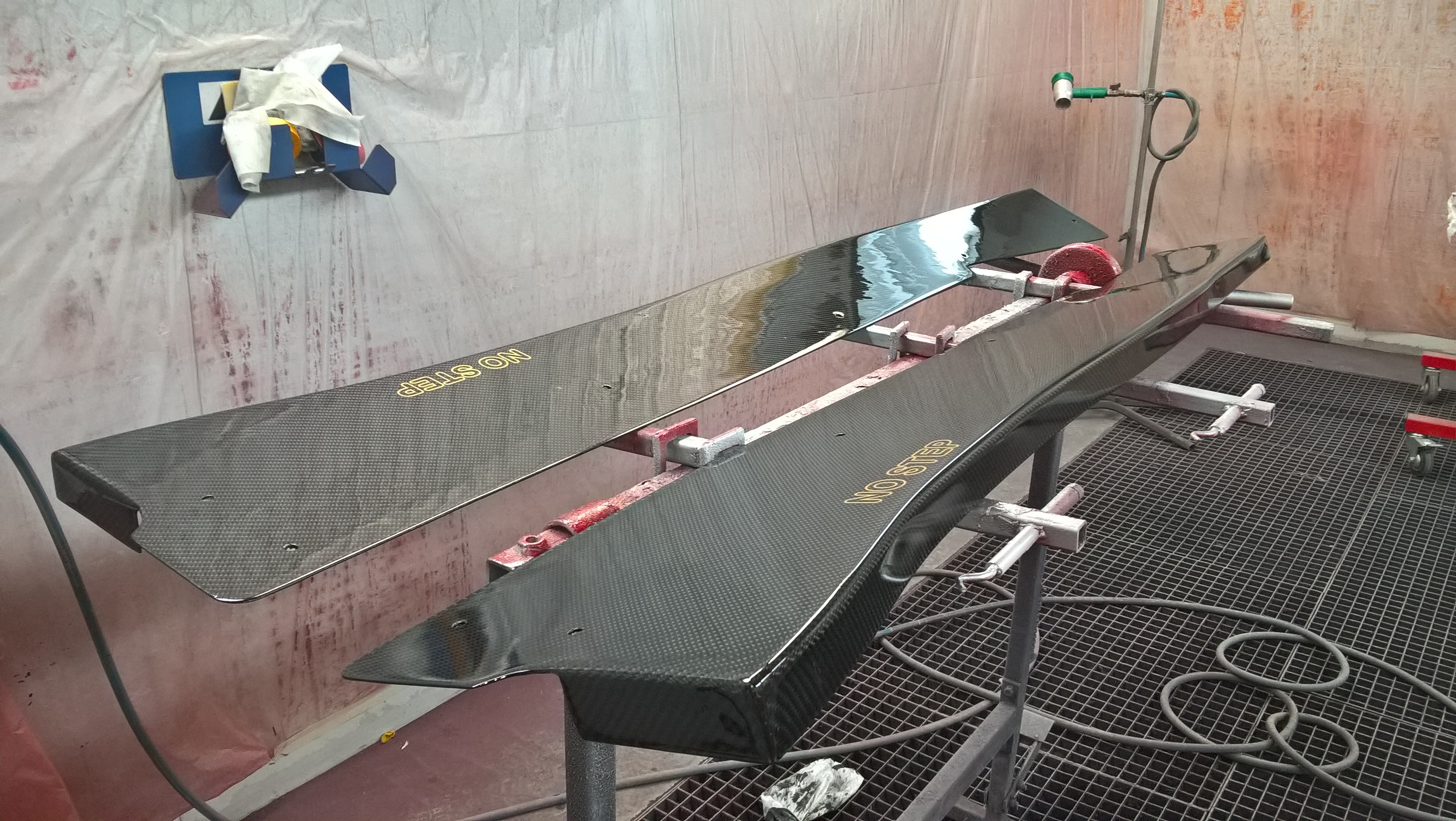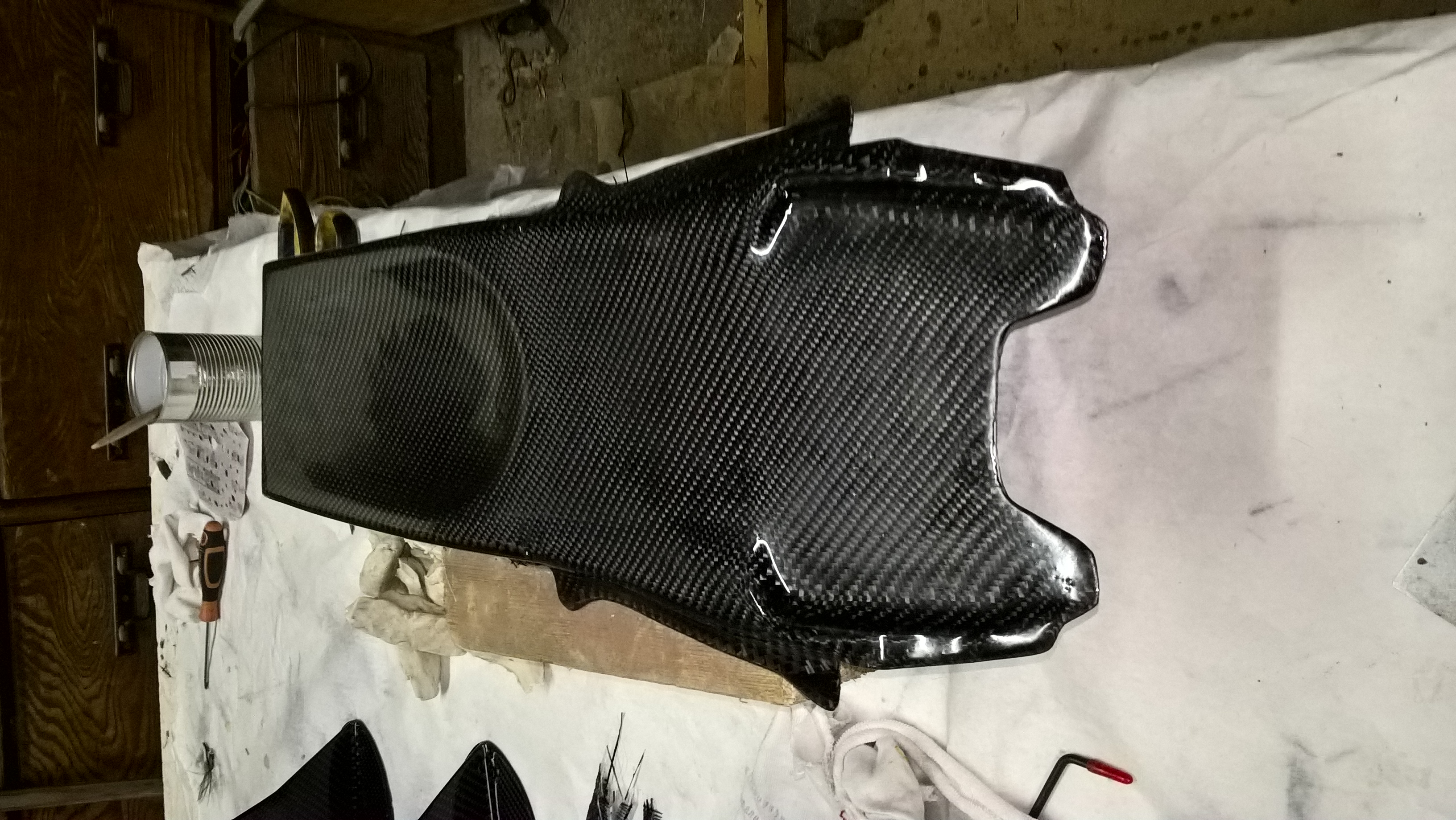 et pour ce qui est des petit trous dans le carbone j'ai trouver qu'en appliquant un premier vernis au pinceau avant de le faire en cabine au pistolet ça en bouche beaucoup ce qui fait moins de travail de ponçage par rapport a un glaçage