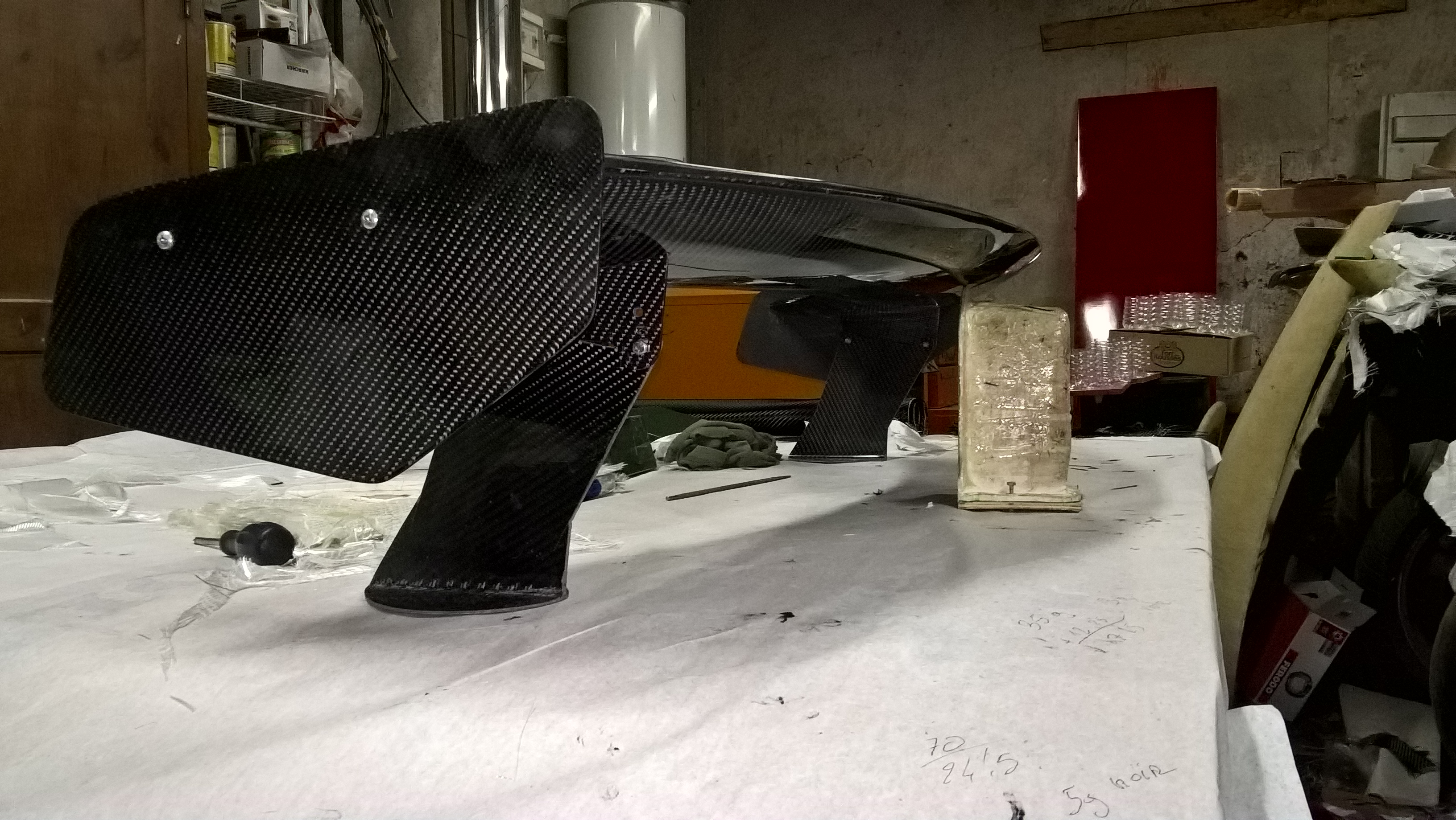 je vous fait un petit retour sur certaine des dernières créations et je me pose encore la question de la meilleur solution pour assembler mon aileron que je vient de finir de mouler(voir photo) tout en restant compétitif au niveau du poids (2.5 kgs pour l'origine contre 1.780kgs pour le mien)